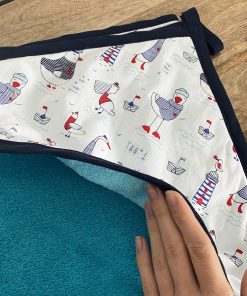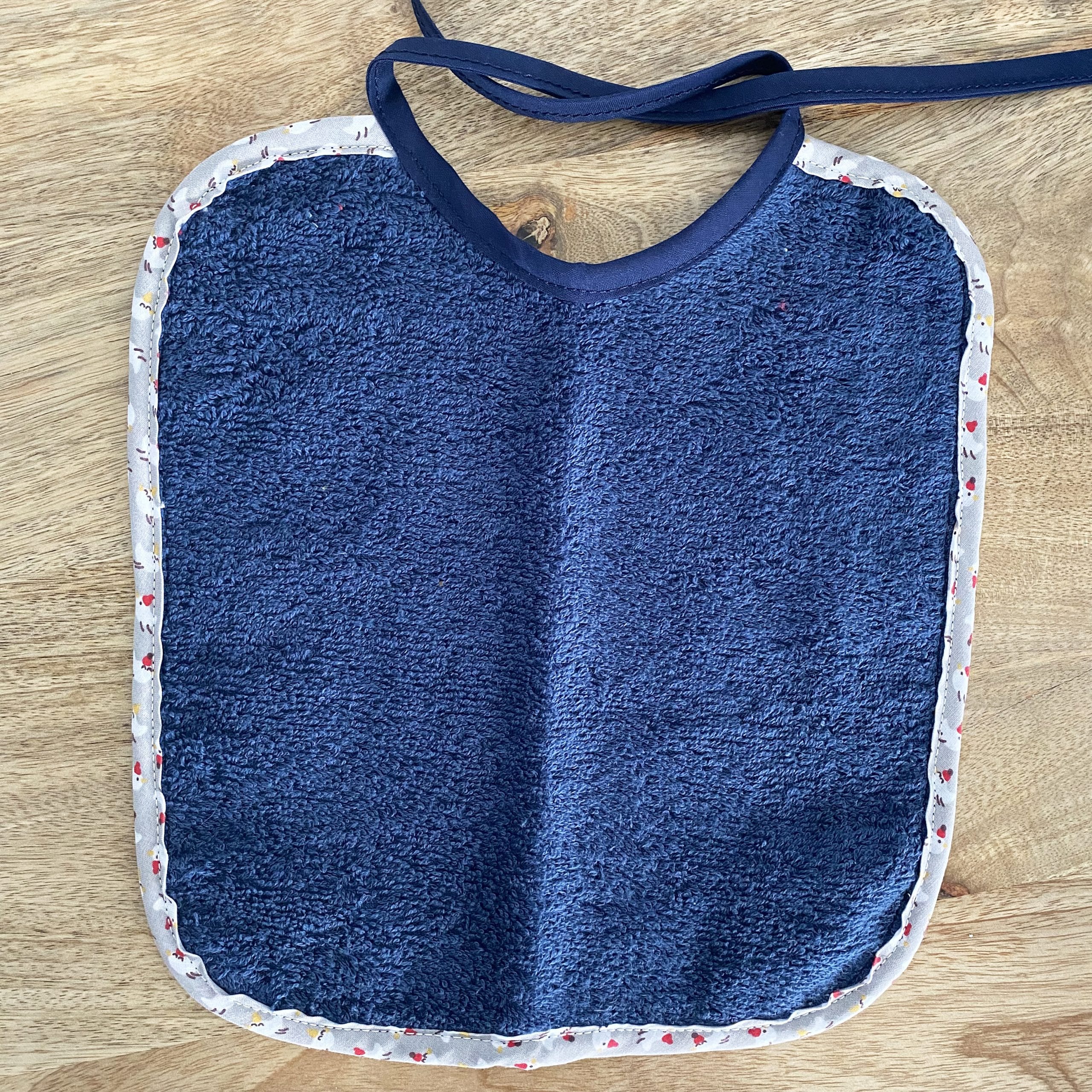 - Un bavoir avec ficelles à nouer – Hauteur 26 cm / Largeur 24 cm