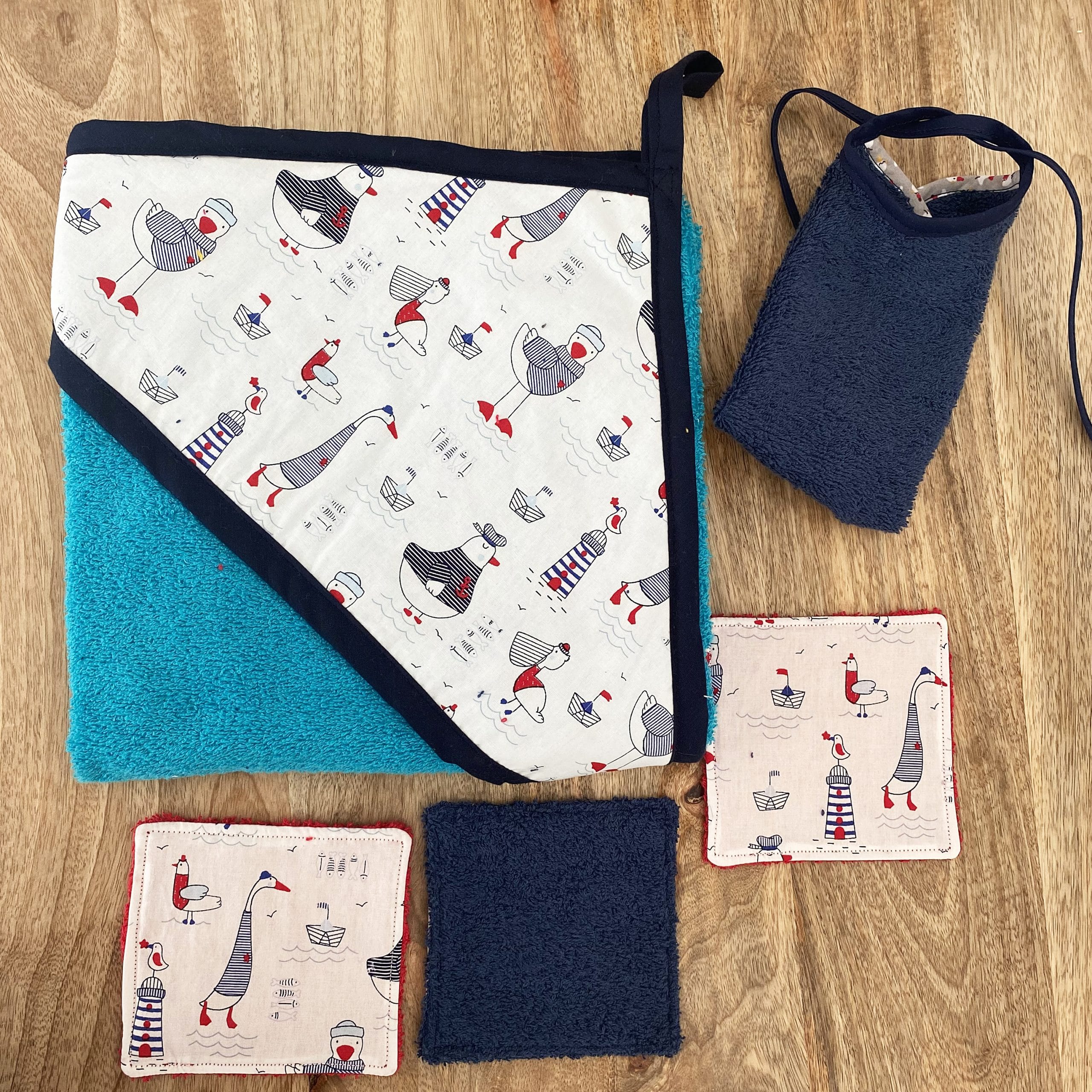 DURABLE : Tous les éléments sont réalisés en 100 % coton et coton éponge , en FRANCE et à la main. Solides, ils pourront être utilisées lavage après lavage.