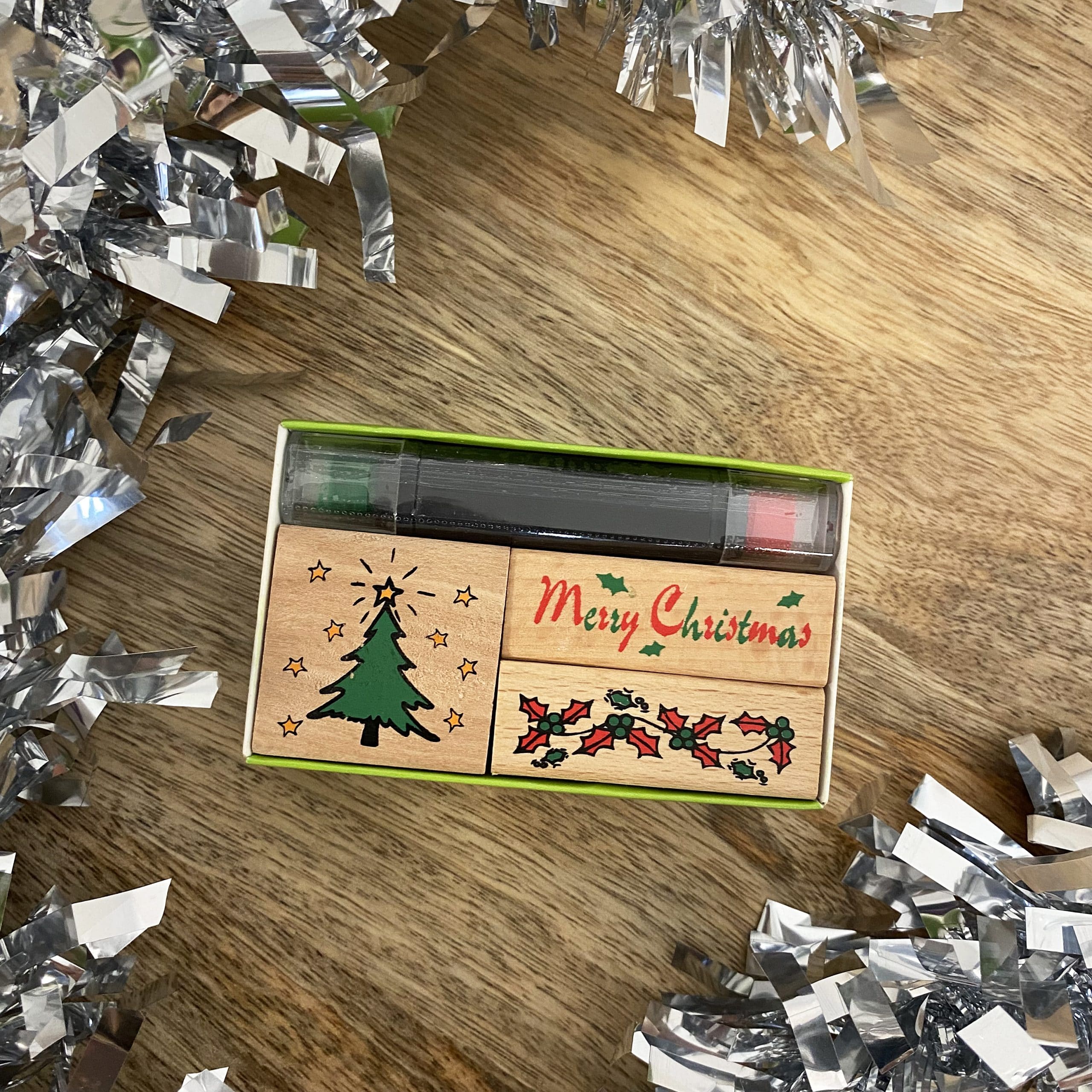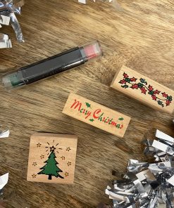 Grâce à ce petit kit de tampons, vous pourrez personnaliser vos cartes, dessins et autres créations pour les fêtes.