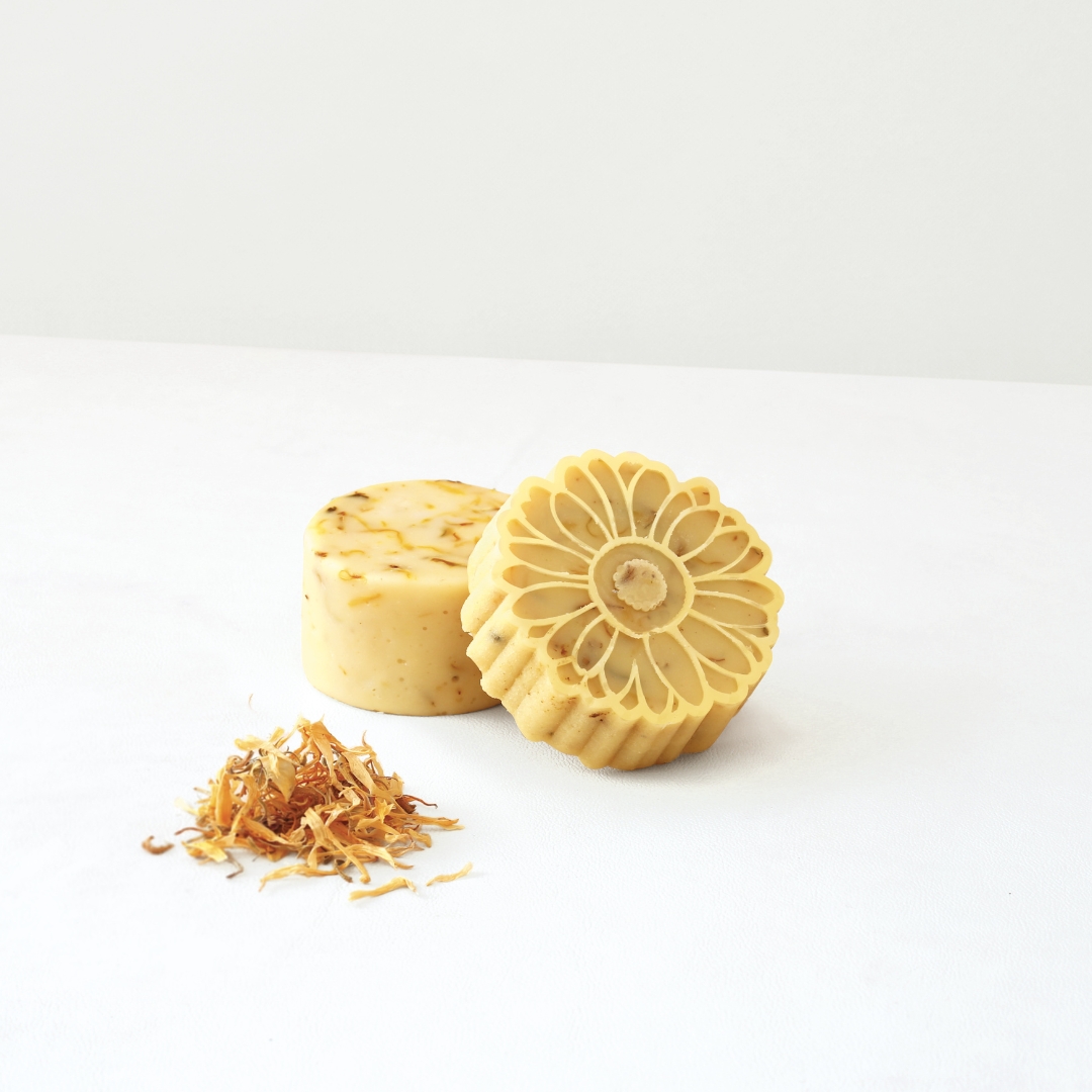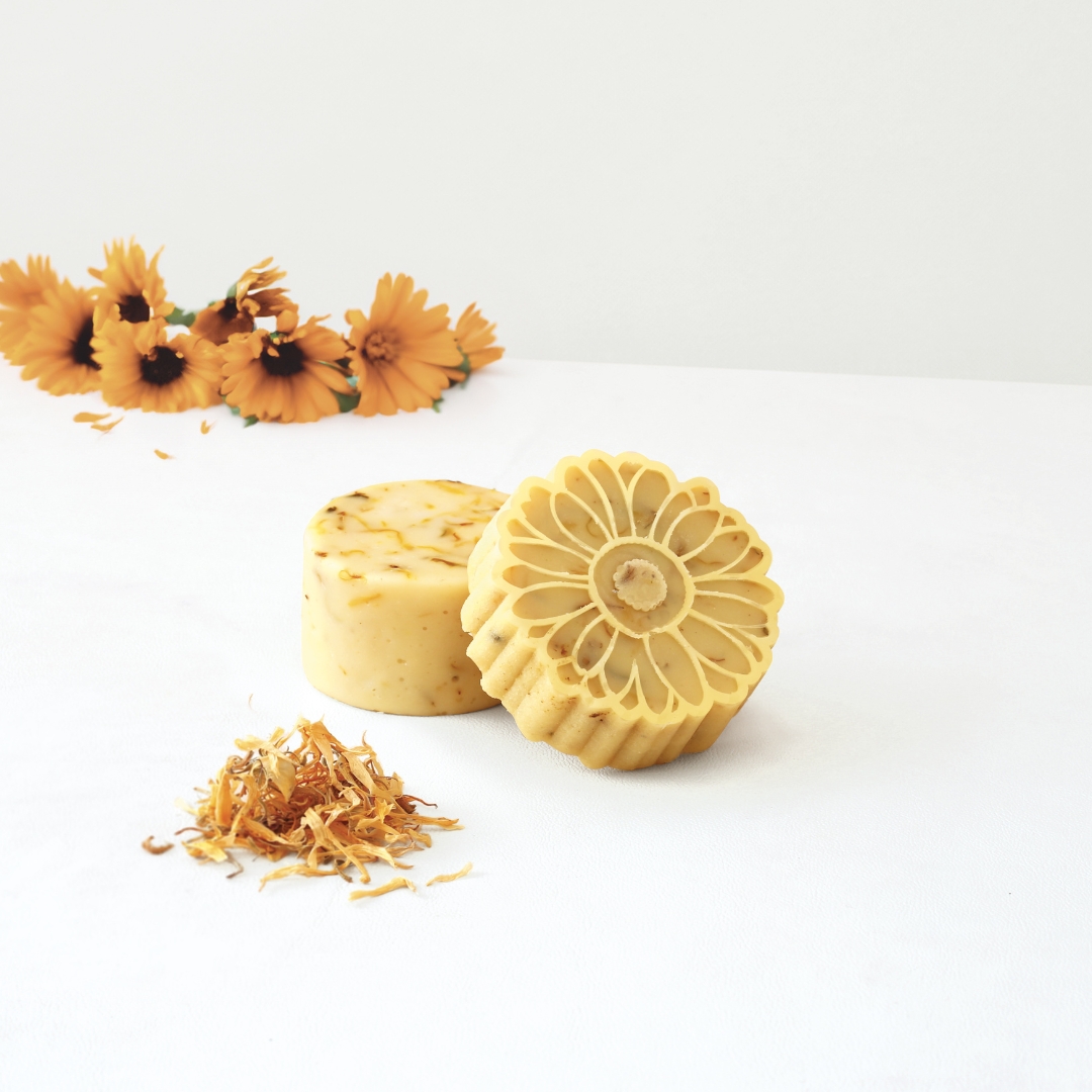 Le moule fleur et les pétales de calendula séché en font de véritables savons à la fois déco et respectueux de la peau.