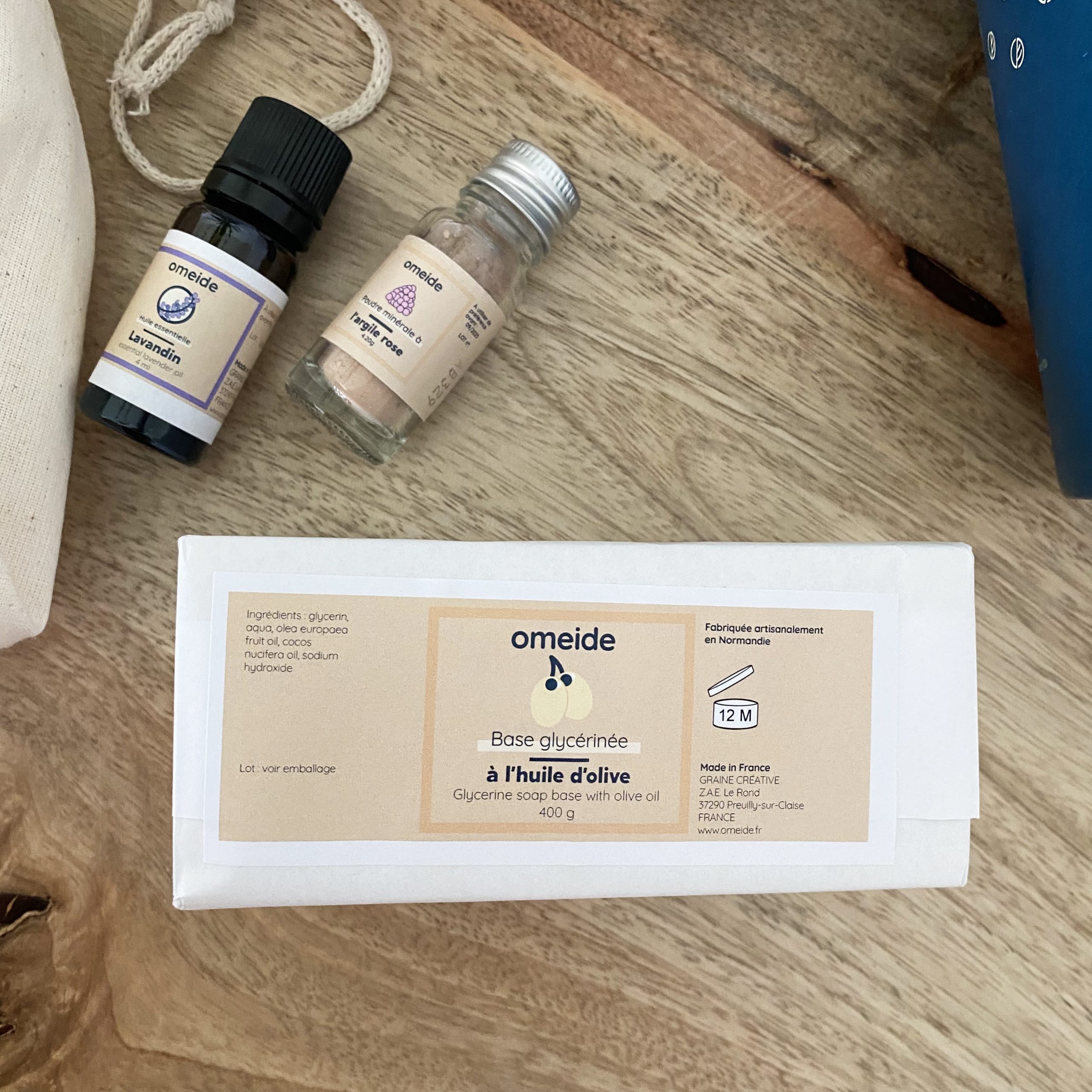 Ce kit permet de fabriquer ses propres savons naturels solides à la lavande à la maison.