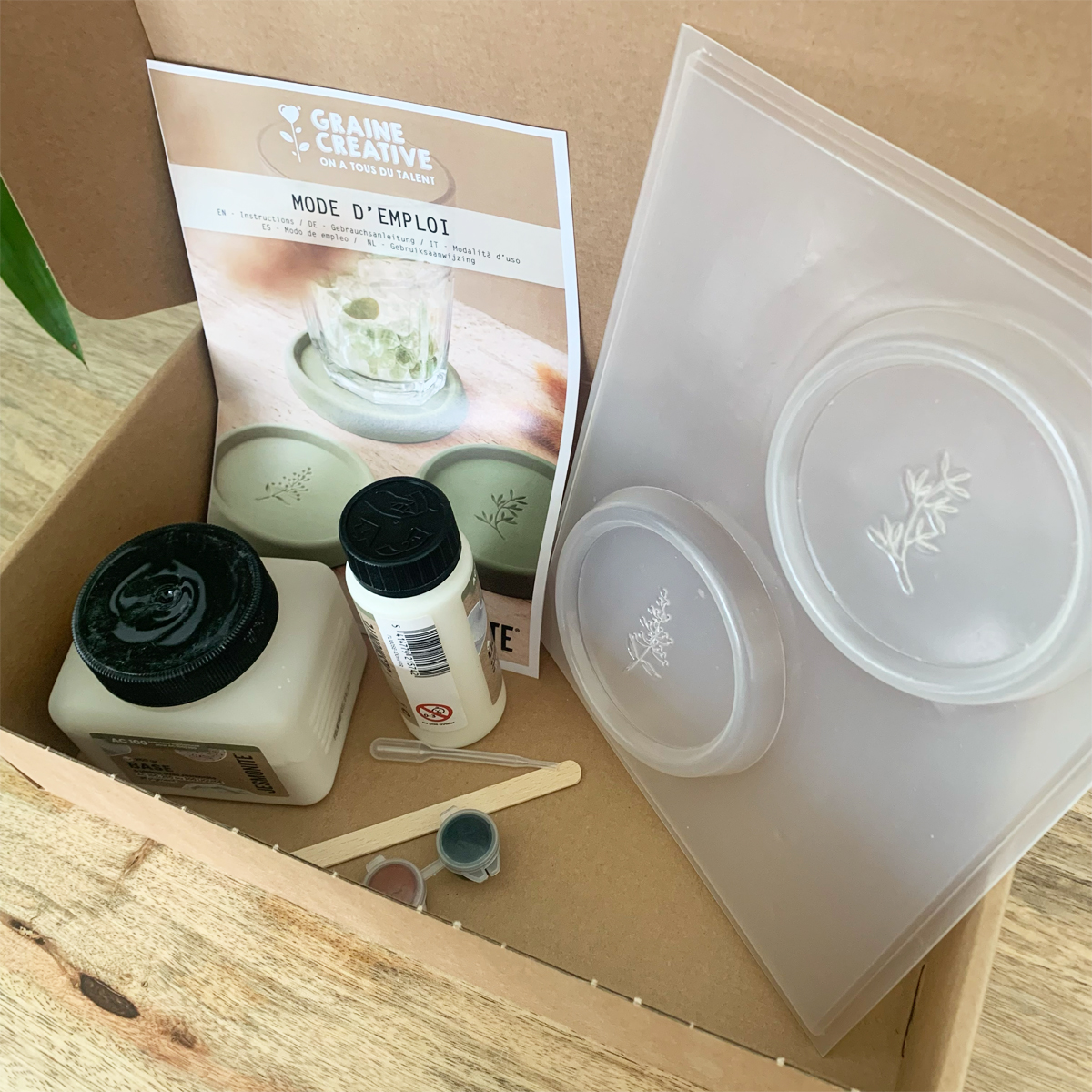 Ce kit permet de fabriquer ses propres sous-verres en Jesmonite.