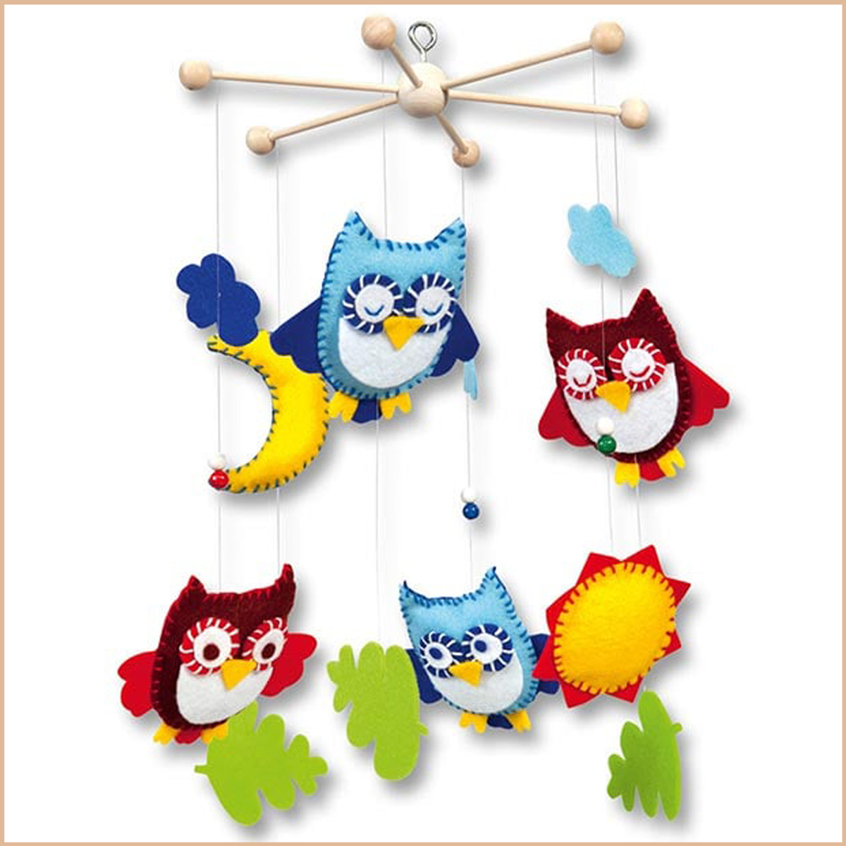 Avec ce petit kit vous allez pouvoir réaliser vous-même votre mobile hiboux et éveiller la curiosité de vos enfants.
