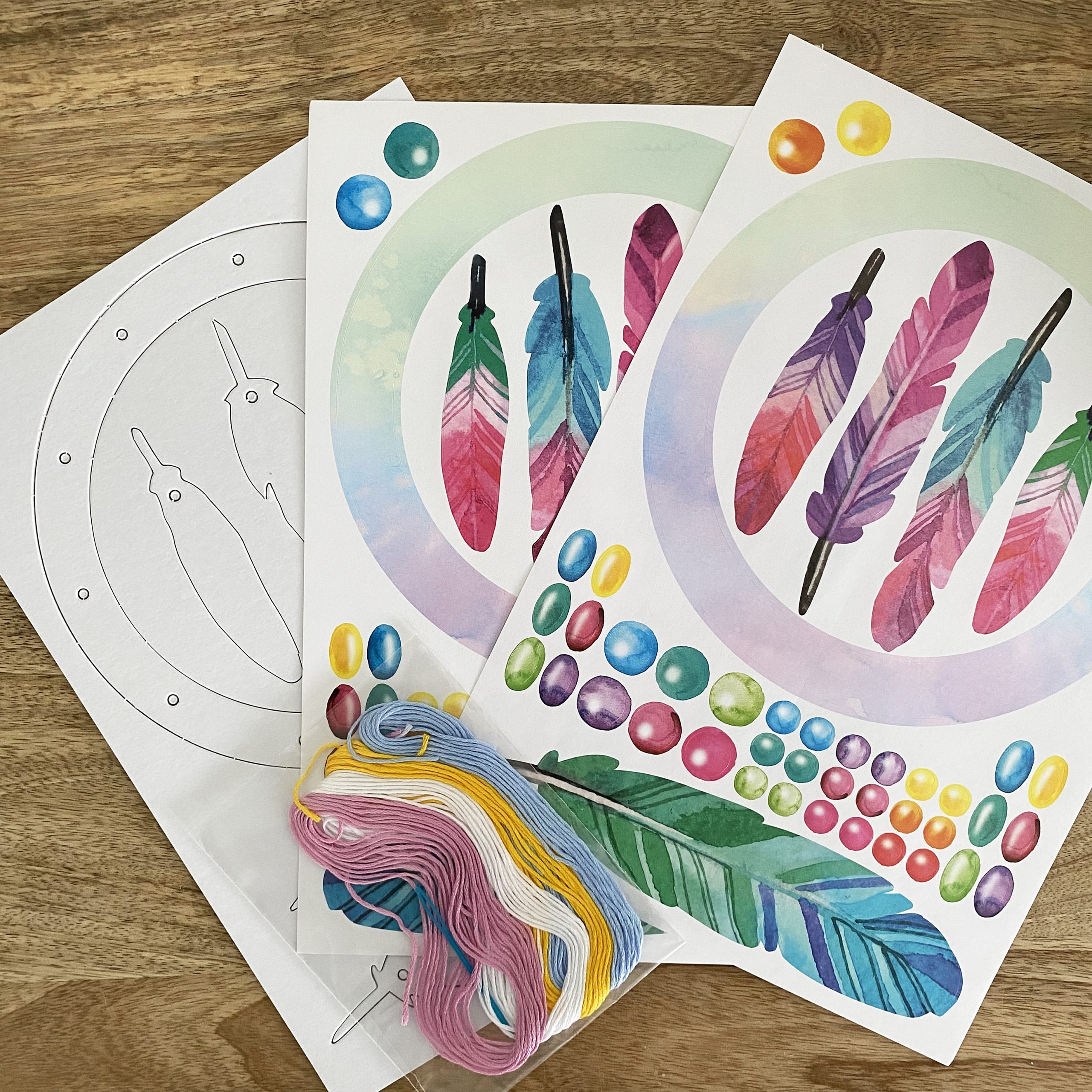 Kit complet pour fabriquer son propre attrape-rêves coloré et personnalisé.