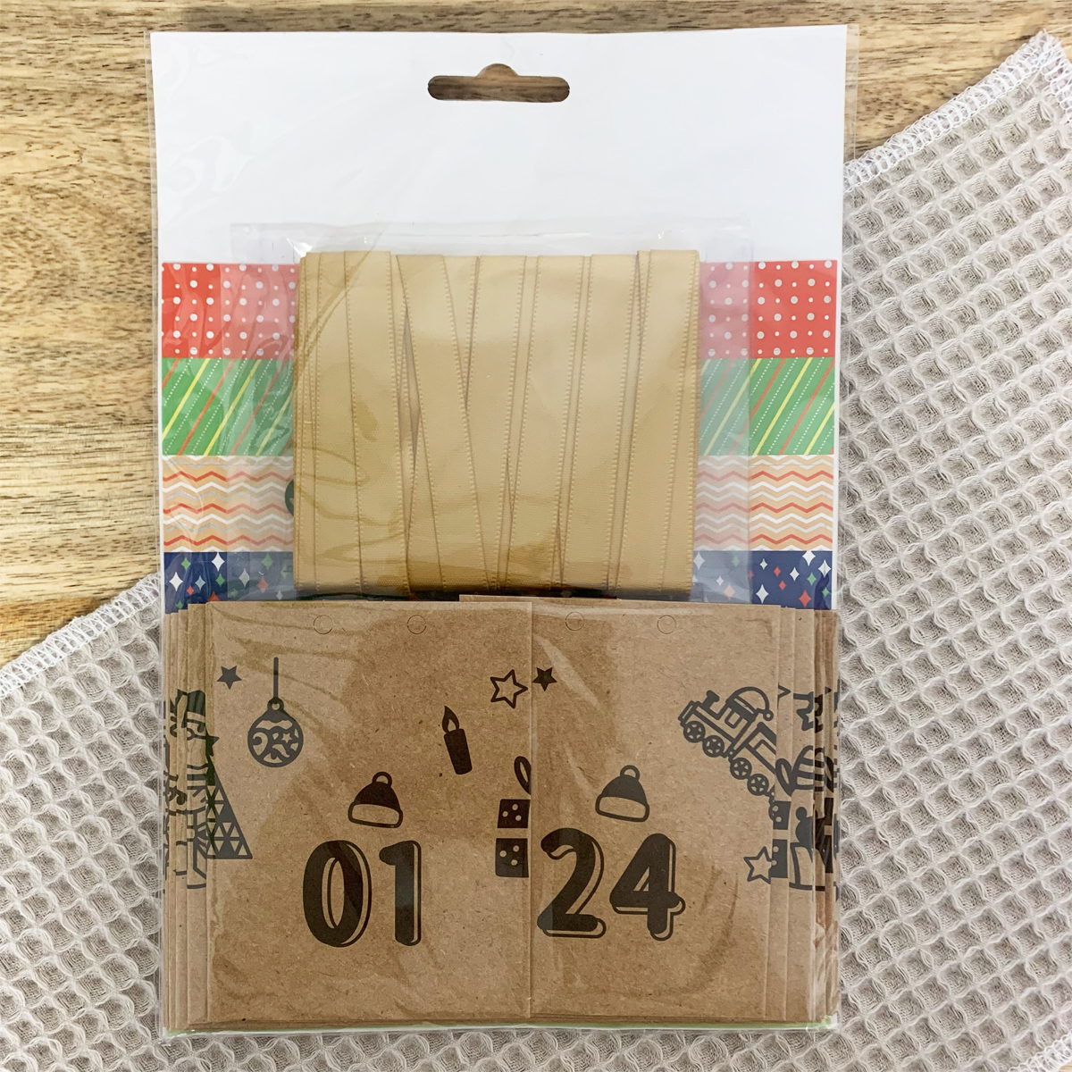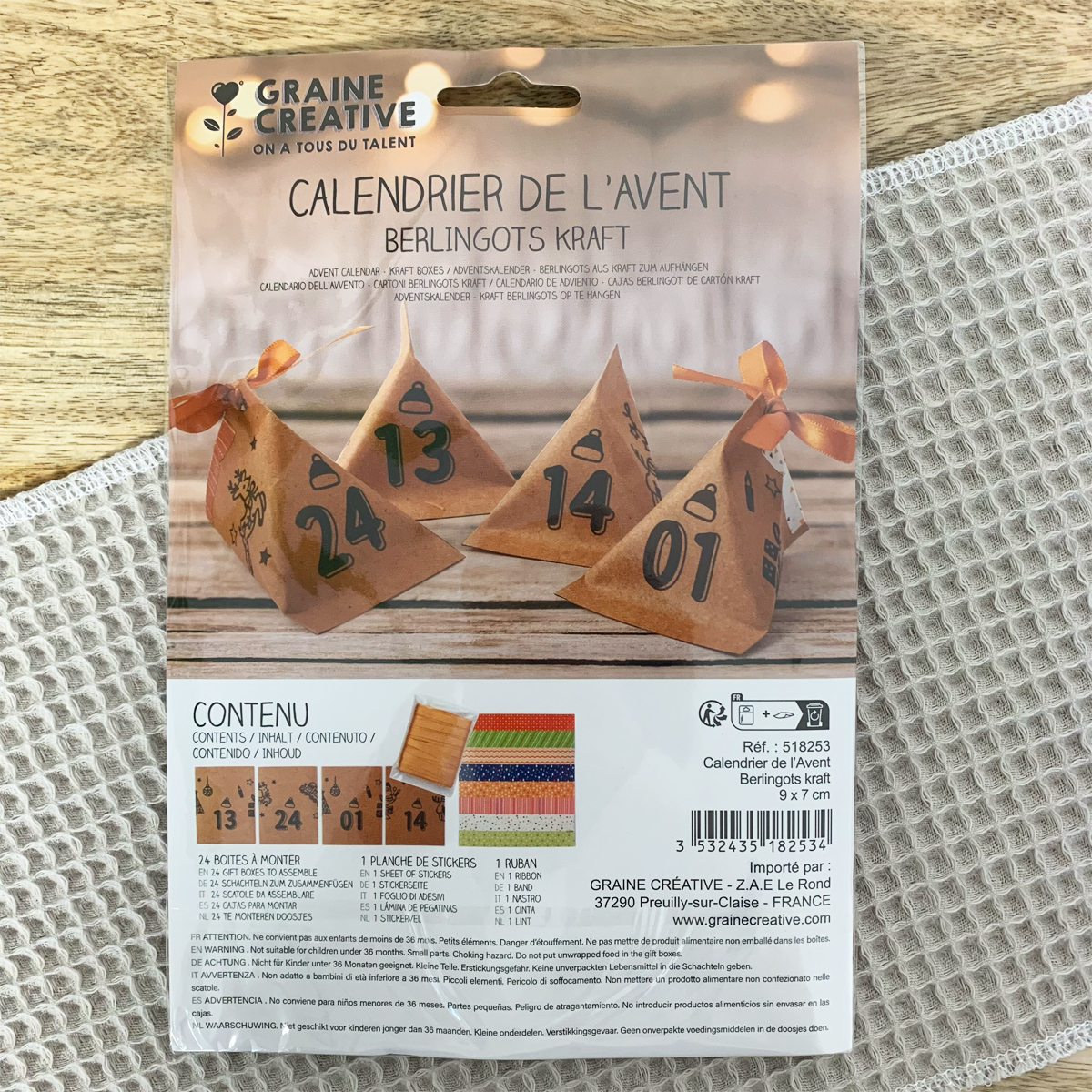 - 24 boîtes numérotées à monter (berlingots en Kraft)