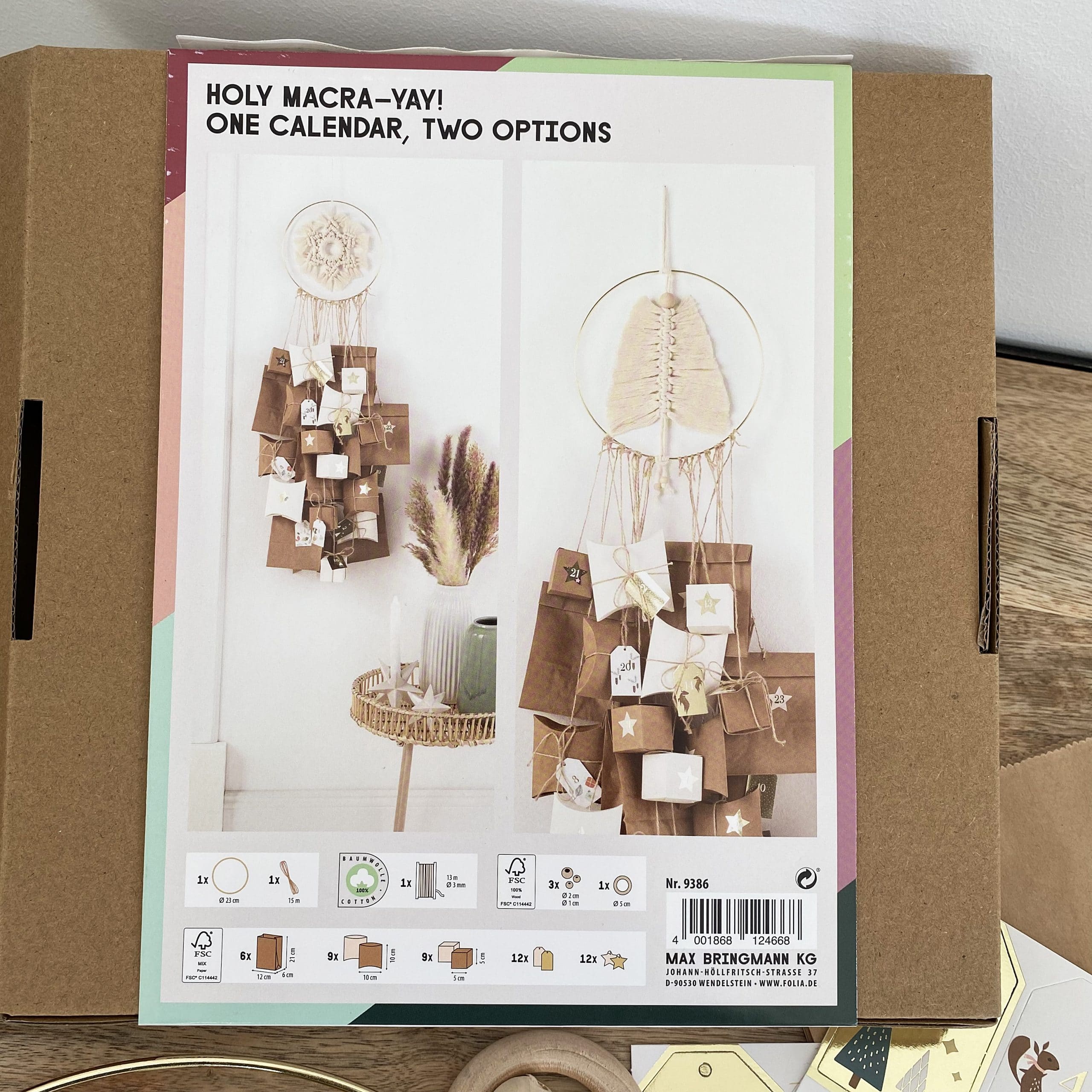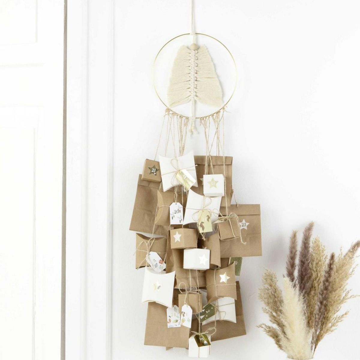 Magnifique calendrier de l’avent avec comme pièce maitresse un macramé flocon de neige ou sapin au choix qui, une fois le calendrier ouvert pourra être conservé comme décoration murale.