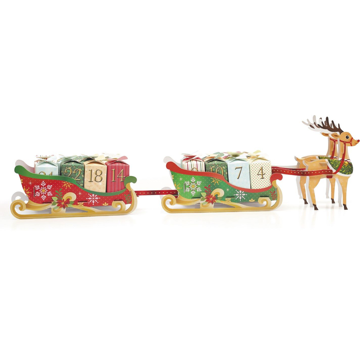 - 2 rennes + 2 traineaux à remplir de surprises