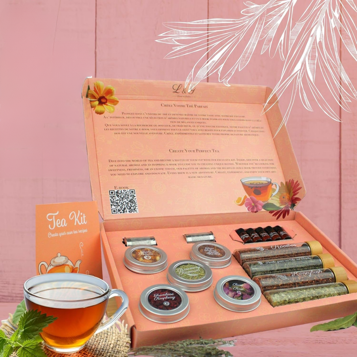Explorez le monde du thé et prenez le contrôle de vos créations avec notre kit exclusif. À l’intérieur, une sélection d’arômes naturels et un e-book inspirant vous accompagnent dans l’art de composer des mélanges uniques.