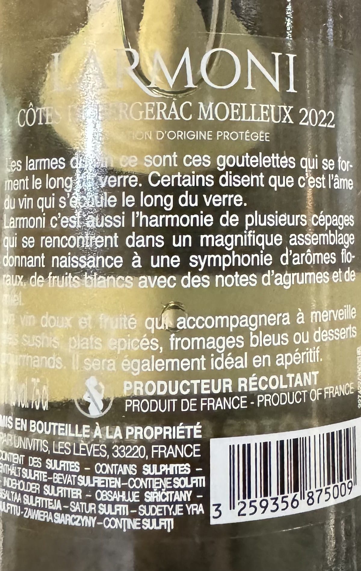 Ce vin est doux et fruité et il pourra accompagner des sushis, des plats épicés, fromages bleus et sera idéal pour vos apéritifs!