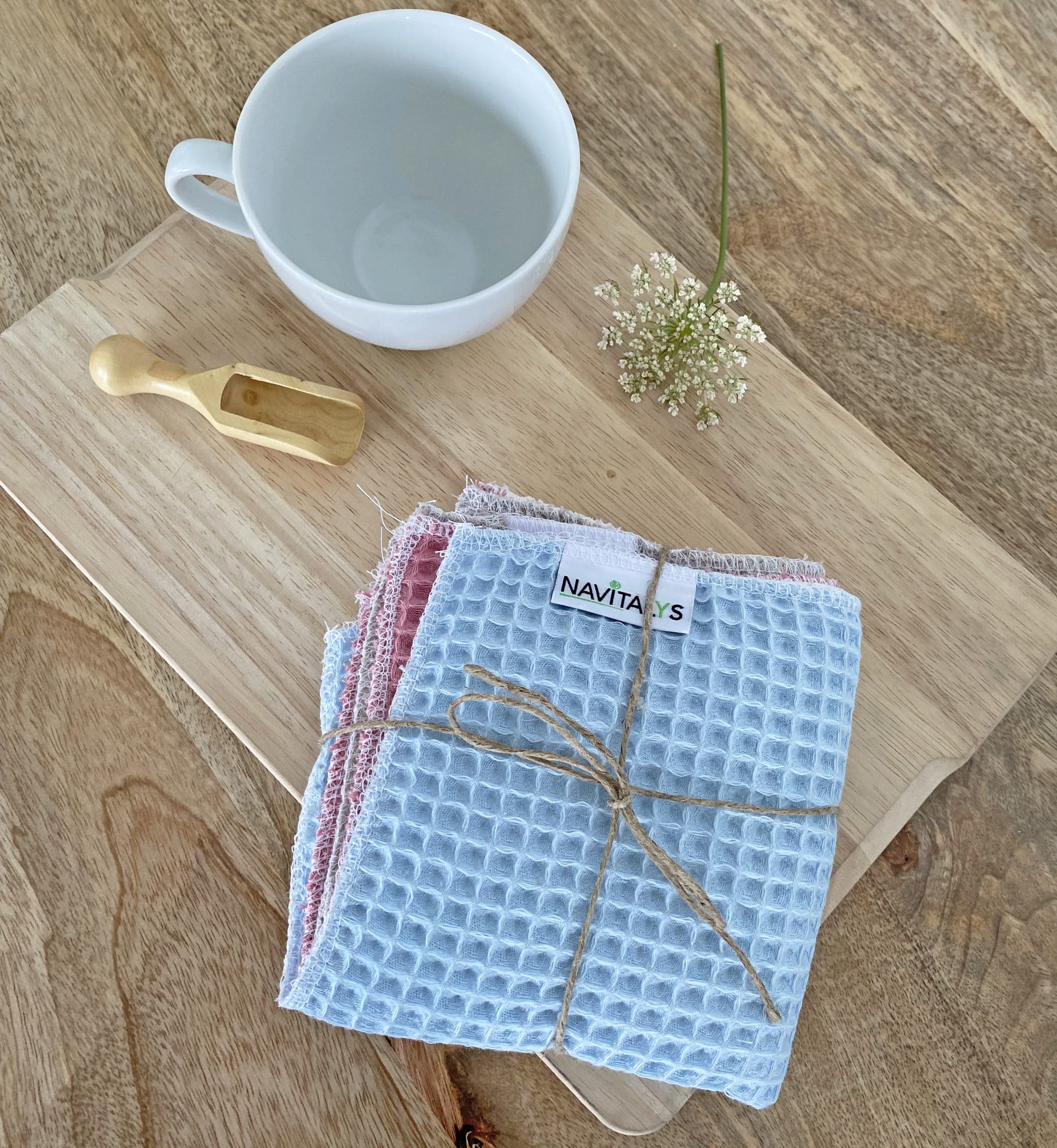 Les lavettes en nid d’abeille sont une alternative à l’essuie-tout jetable. Réutilisables, elles permettent de nettoyer toutes les surfaces dans la cuisine mais aussi dans la salle de bain. Le tissu nid d’abeille est très absorbant et sera tout aussi efficace que les éponges traditionnelles.
