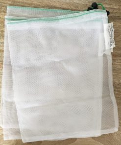 Ce lot de 4 sacs filet réutilisables est un indispensable pour vos courses en vrac de fruits et légumes.