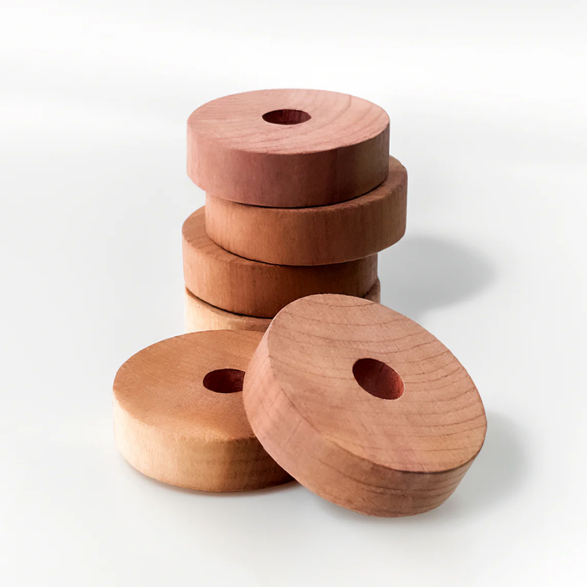 Ces anneaux en bois de cèdre rouge sont très pratiques à utiliser et parfaites pour éradiquer les mites de vos placards et les éloigner de vos vêtement et autres insectes.