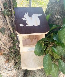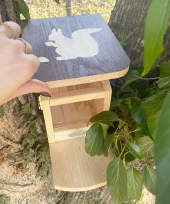 Les écureuils ont besoin d’un abri et de nourriture pour la nidification et l’hibernation, ce petit mangeoire est donc parfait pour eux.