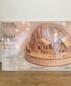 À base de bois, le chalet en forêt va prendre vie en 3D et pourra ensuite être customisé avec de la peinture, des paillettes …