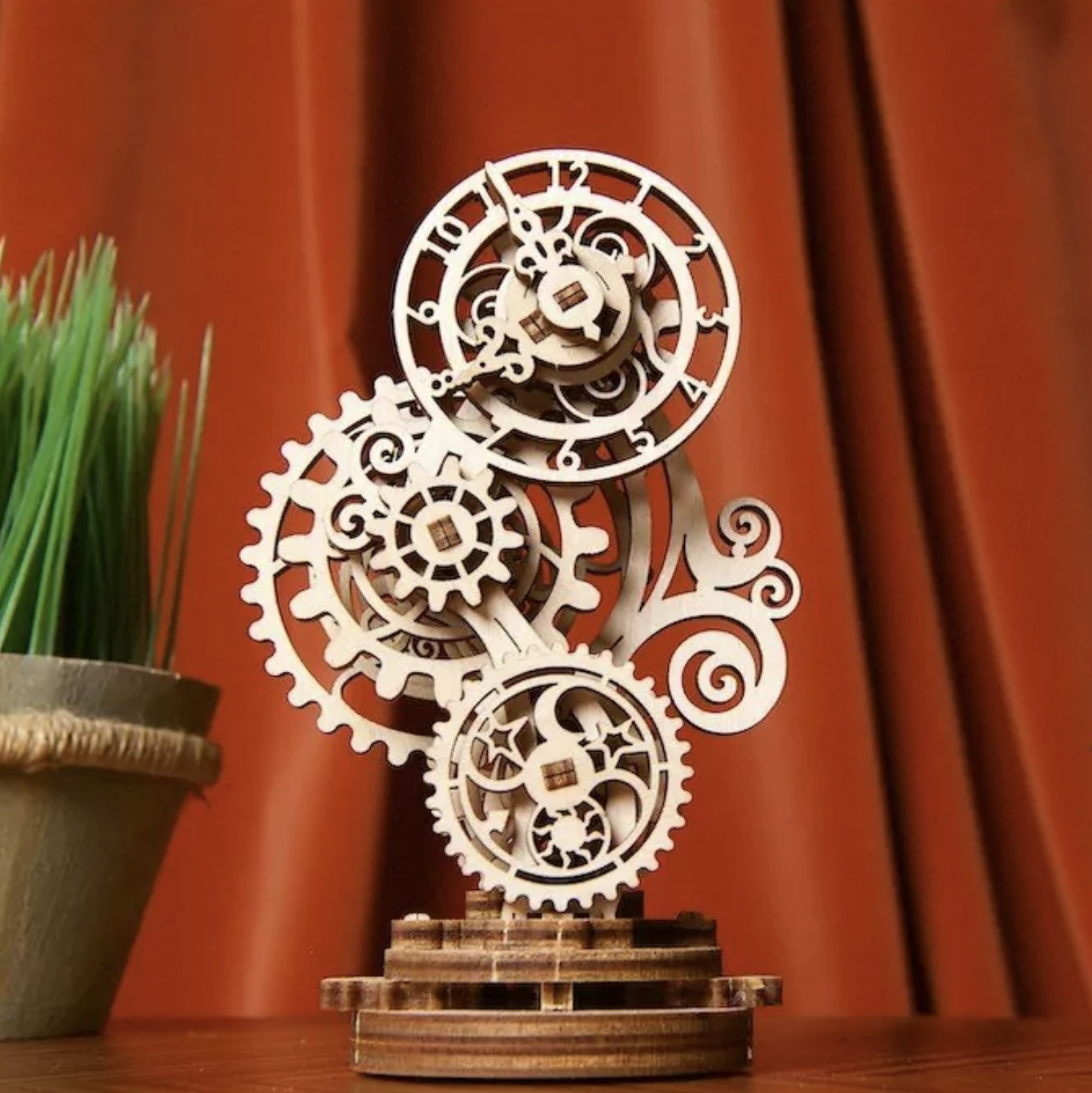 A base de contreplaqué, le puzzle 3D donnera vie à une superbe horloge, permet de comprendre l’engrenage qui fait avancer les aiguilles.