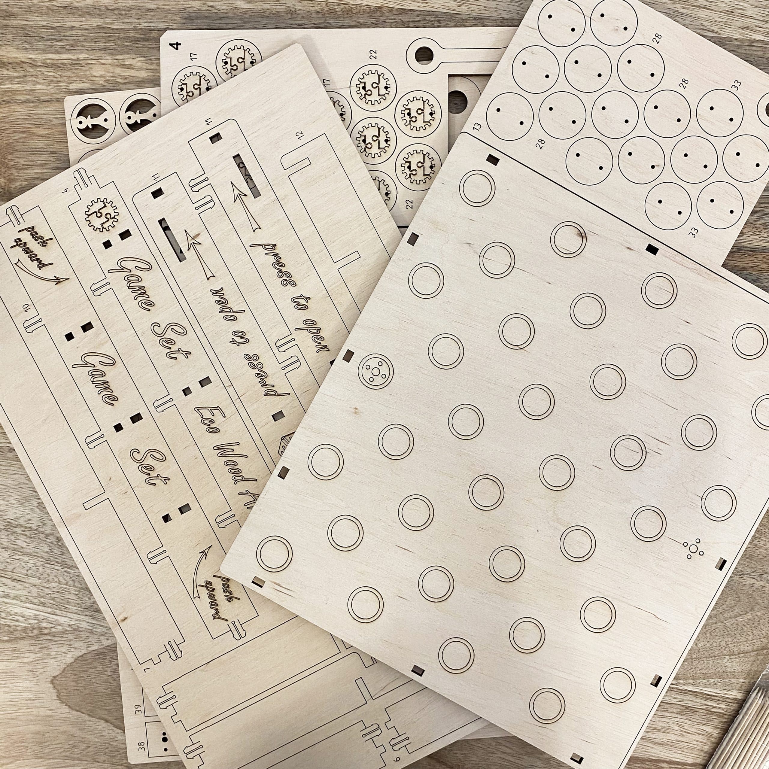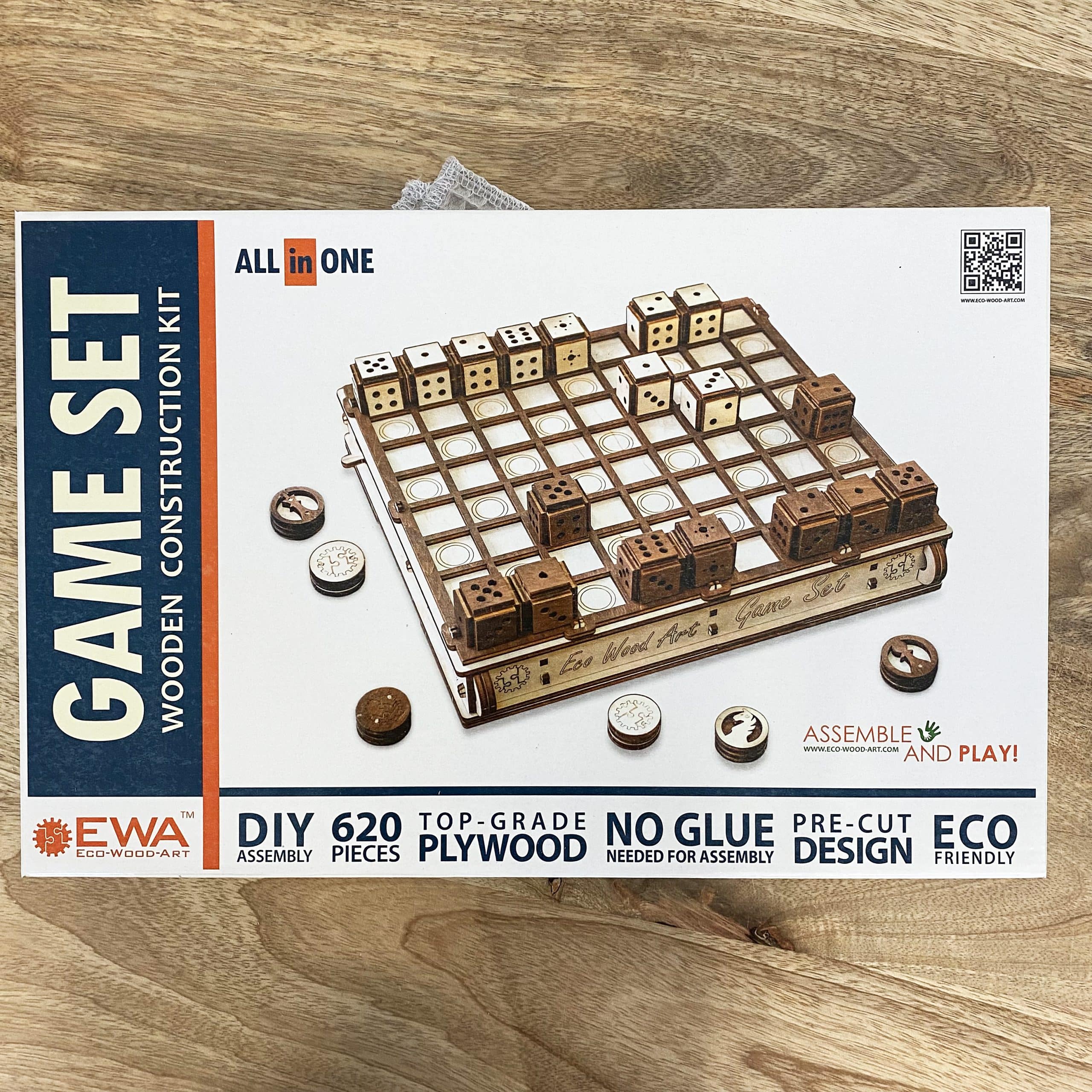 A base de contreplaqué, le puzzle 3D donnera vie à 3 jeux de plateau : Echecs, Dammes et jeu de mathématicien ‘Battle’ (les règles du jeu sont incluses).