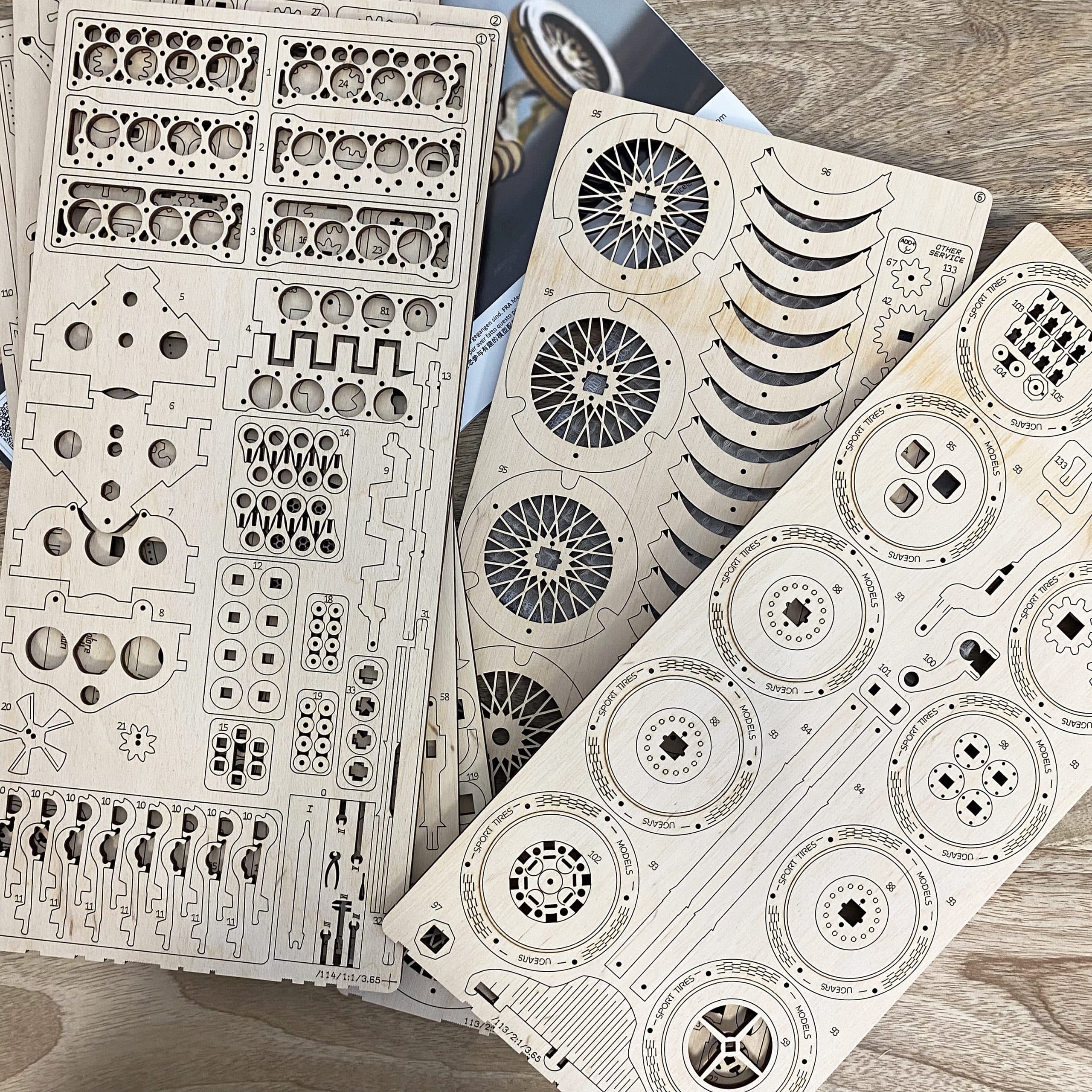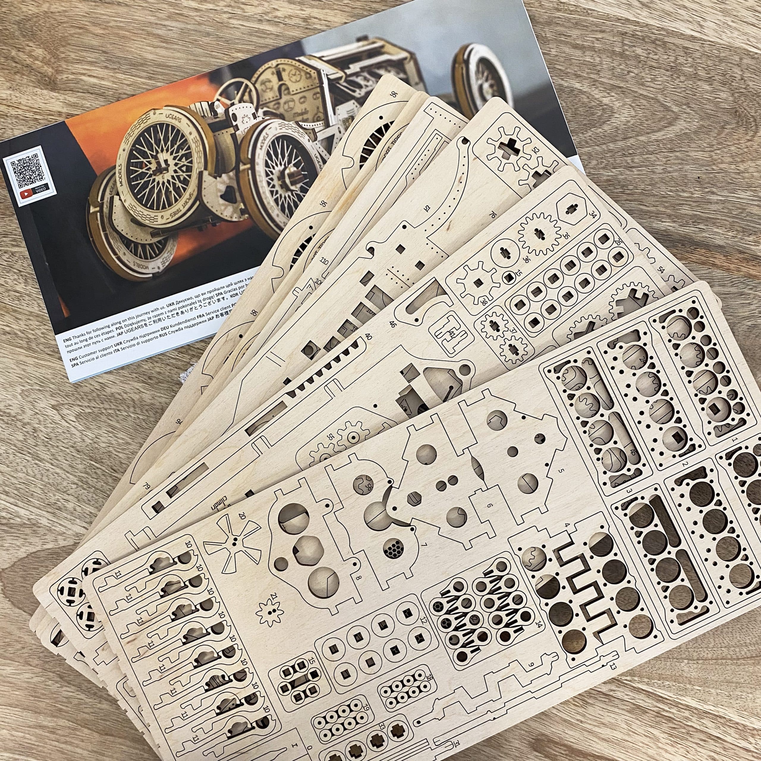 A base de contreplaqué, le puzzle 3D donnera vie à une superbe voiture de collection : le Bolide U-9