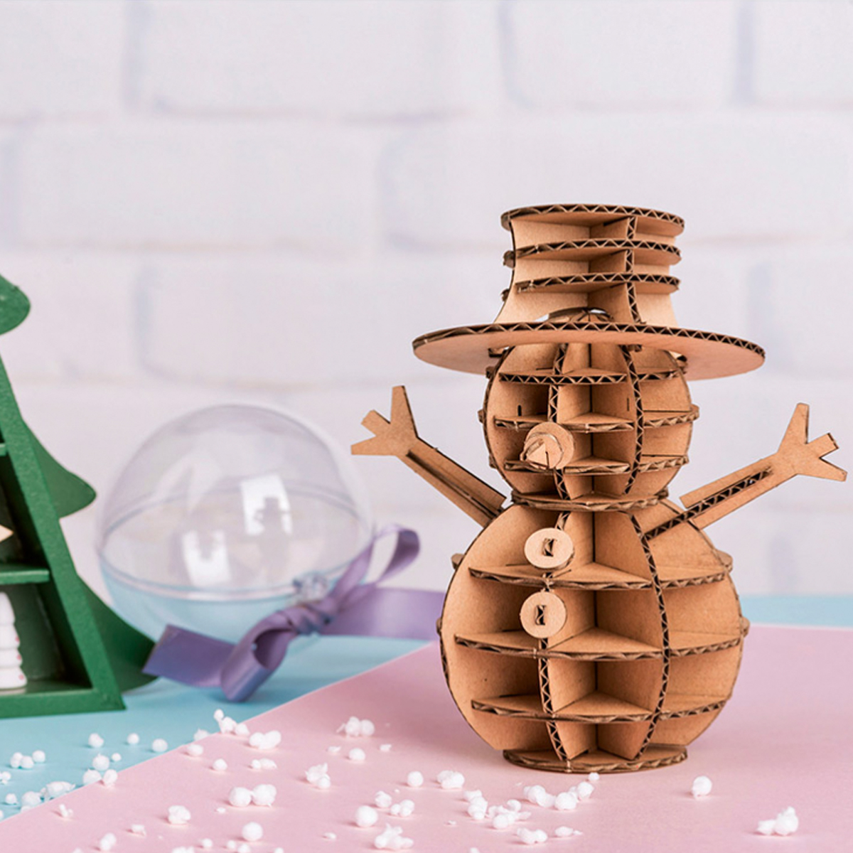 A base de carton, le bonhomme de neige va prendre vie en 3D, il pourra ensuite être customisé avec de la peinture, des paillettes …