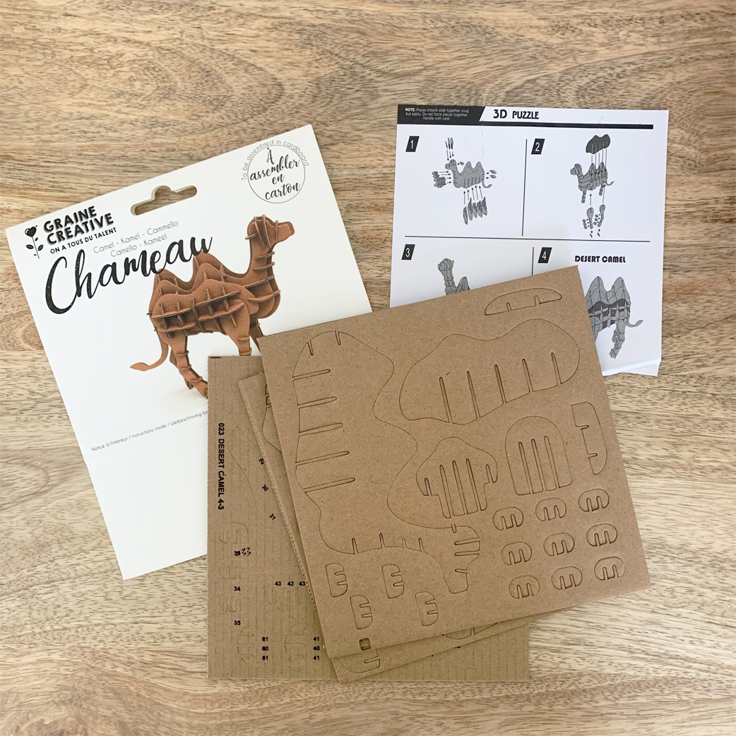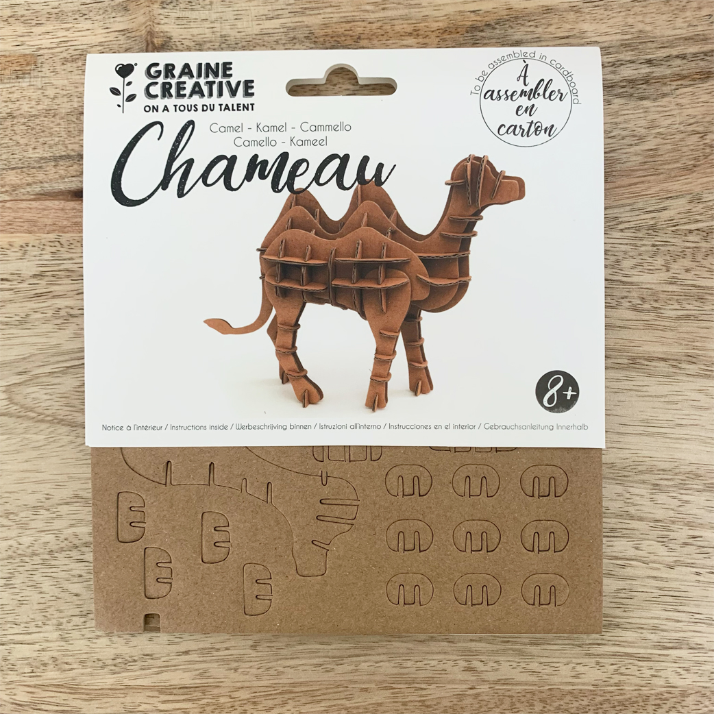 A base de carton, le petit chameau va prendre vie en 3D, il pourra ensuite être customisé avec de la peinture, des paillettes …