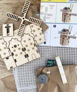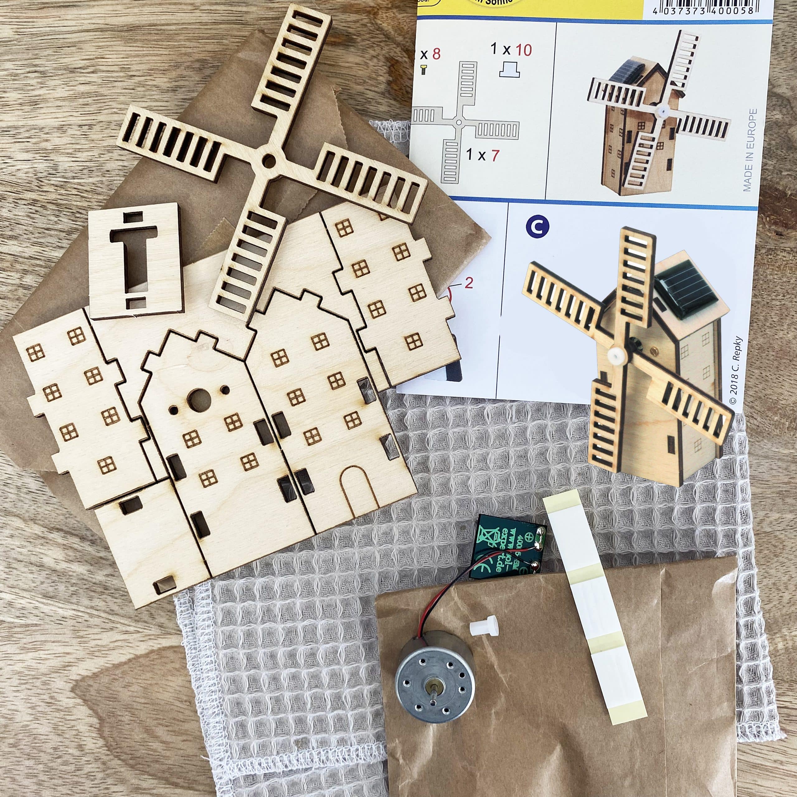 Kit de loisir créatif alliant le plaisir du montage de la maquette en bois et la découverte de l’énergie solaire.