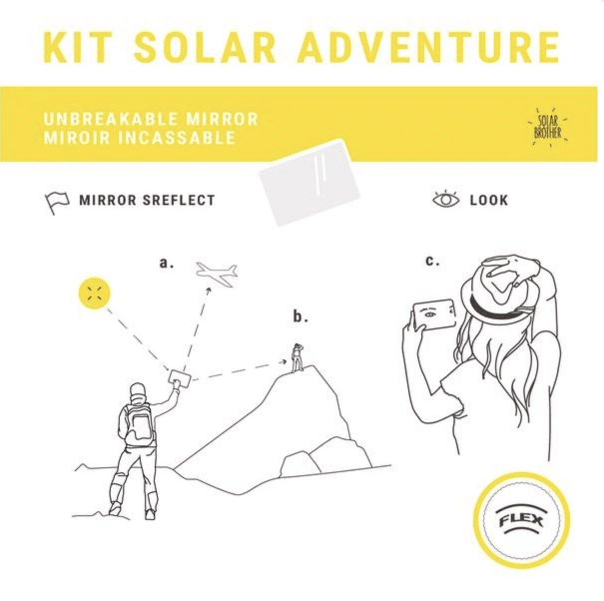 Kit solaire d’aventure : Un allume-feu solaire et un miroir de signalisation ultra-compact.