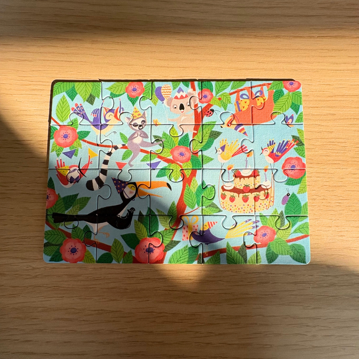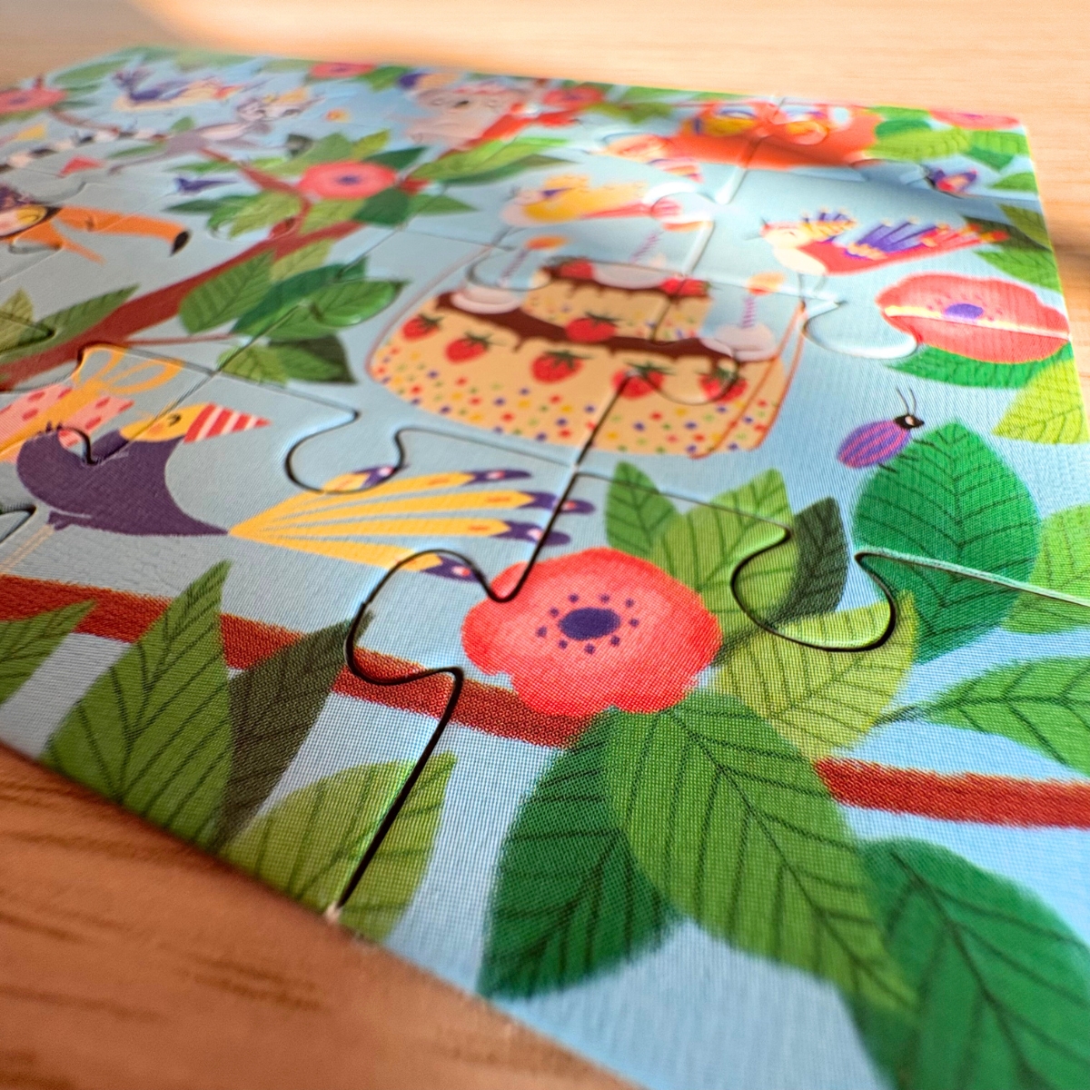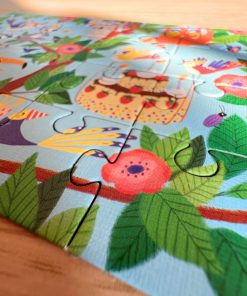 Conçu spécialement pour les petites mains, ce puzzle coloré représente une petite fête d’anniversaire dans la jungle, entouré des animaux de la forêt tropicale