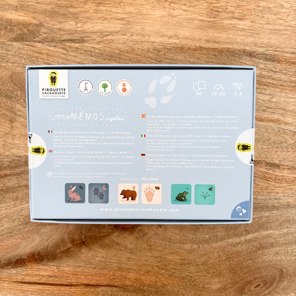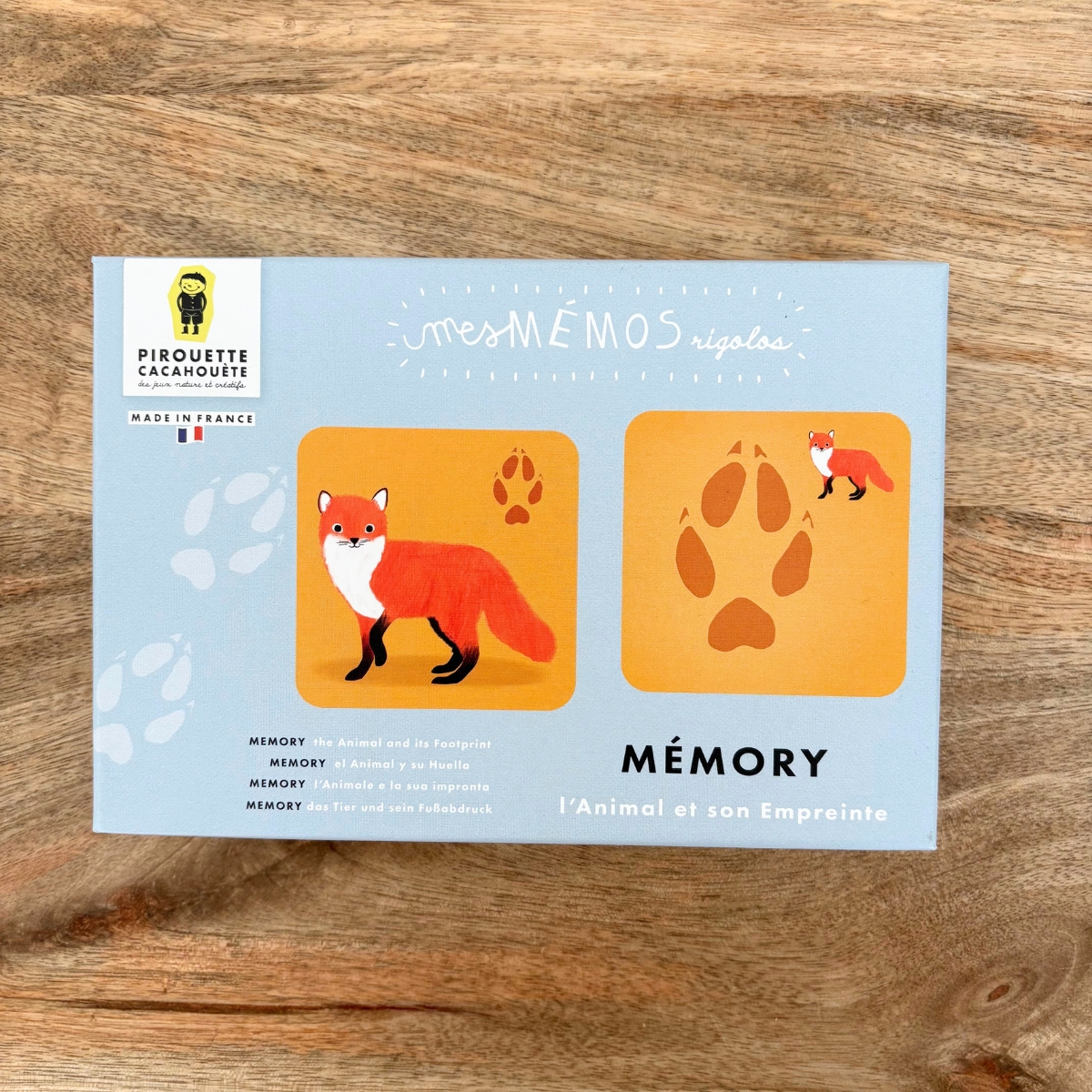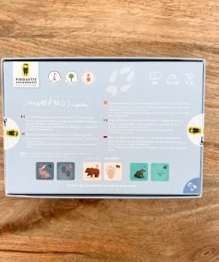 Conçu spécialement pour les petites mains, ce mémo coloré amusera vos enfants tout en leur apprenant à reconnaître les empreintes des animaux.