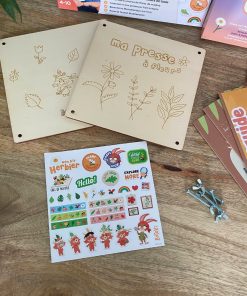 Avec ce kit, fabrique une presse à fleurs en bois et décore là à l’aide de feutre, paillettes et des autocollants présents dans le kit, elle te permettra de collecter des feuilles et fleurs et de les faire sécher dans la presse.