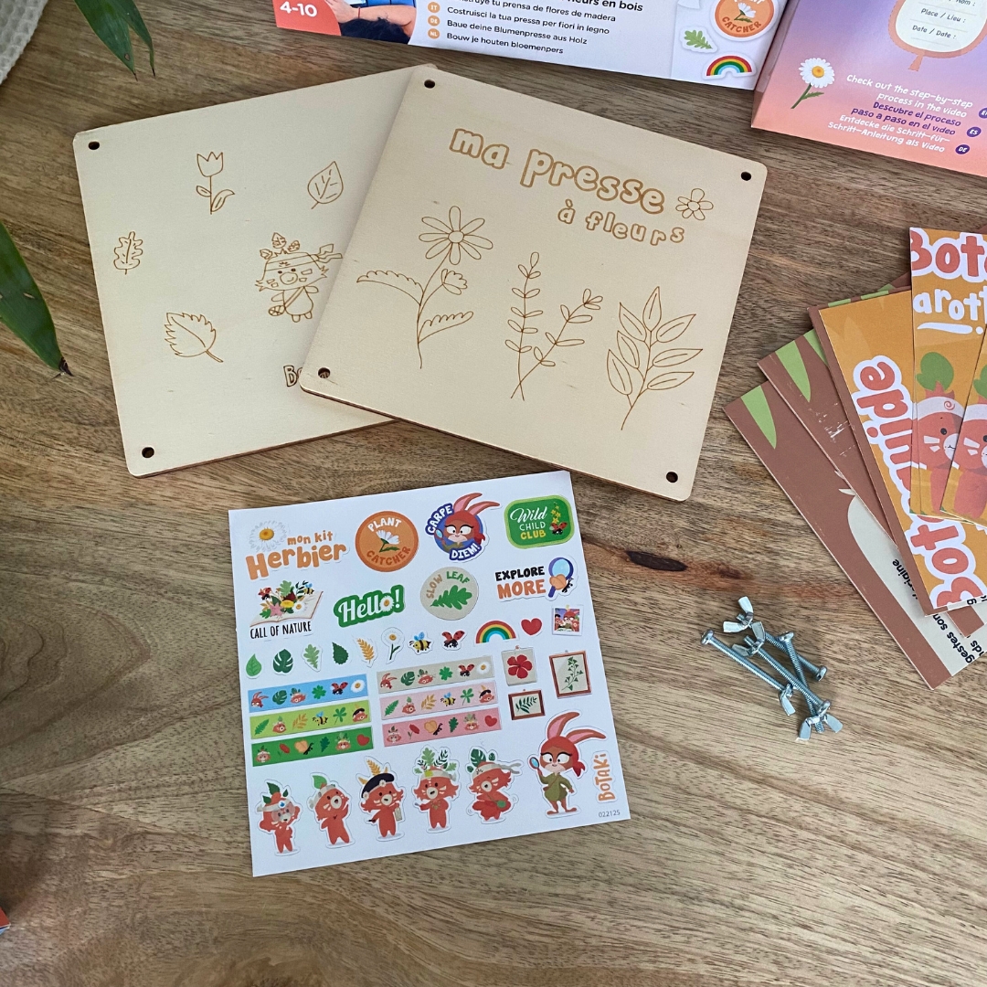 C’est un kit complet pour créer sa propre passe à fleurs et feuilles ainsi qu’un petit herbier.