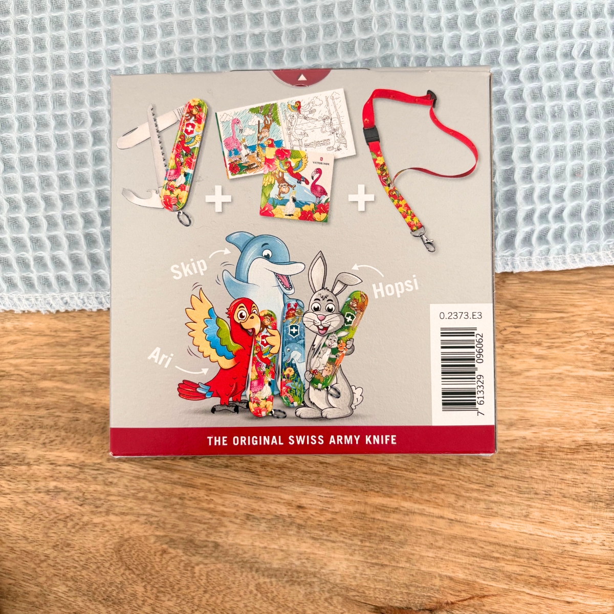 De plus, ce pack dispose d’un livret de coloriage et d’une sangle pour accrocher son couteau suisse.