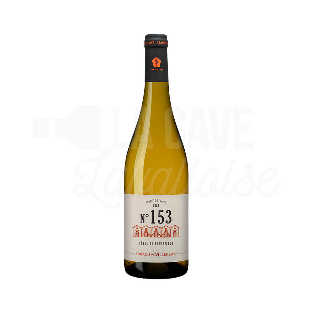 N° 153 – Côtes du Roussillon est un vin blanc de la maison Arnaud de Villeneuve, qui regroupe 350 vignerons pour environ 2500 hectares de vignes à travers la plaine du Roussillon.