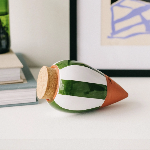 Cet accessoire repose sur la porosité de l’argile. L’eau contenu à l’intérieur de l’olla s’infiltre naturellement et lentement dans ses parois poreuses et se diffuse petit à petit dans le sol environnant.