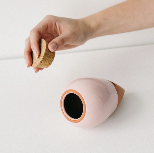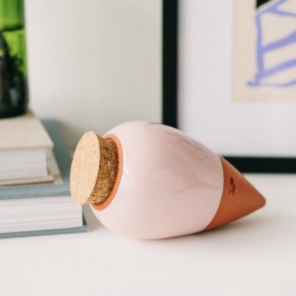 Cet accessoire repose sur la porosité de l’argile. L’eau contenu à l’intérieur de l’olla s’infiltre naturellement et lentement dans ses parois poreuses et se diffuse petit à petit dans le sol environnant.