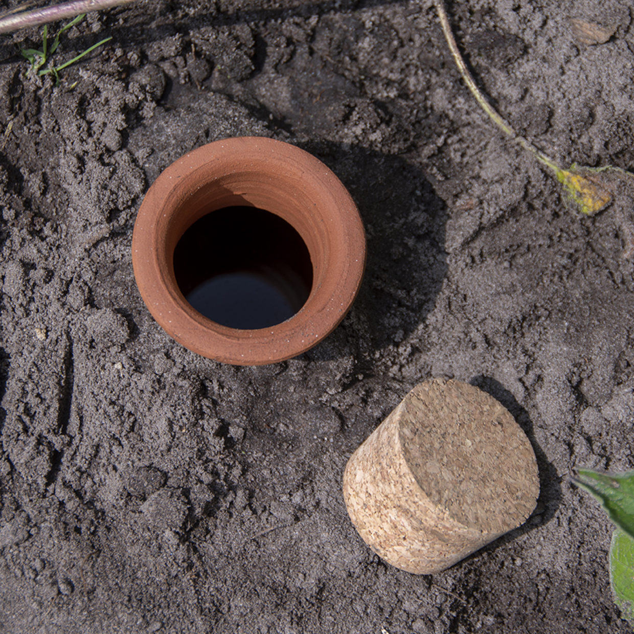 Remplir d’eau l’Ollas, arroser la terre autour et placer le couvercle de l’Ollas.