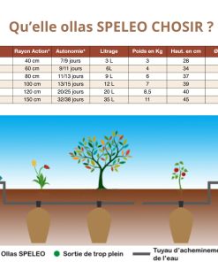 Positionnement : L’espacement entre les ollas SPELEO varie selon leur tailles, leur rayon d’actions, le type de sol etc… (Cf tableau en photo)