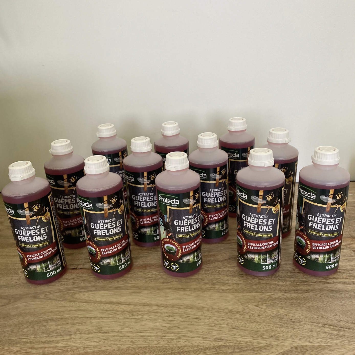 Liquide concentré pour piéger les guêpes, frelons et mouches en extérieurs à base d’ingrédients d’origine alimentaire, s’utilise avec le piège à guêpes (en vente ICI)