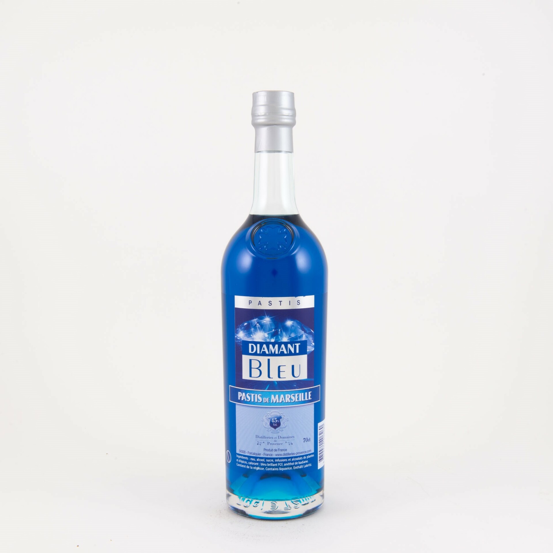 Le Pastis Diamant Bleu des Distilleries et Domaines de Provence tire son goût unique de l’essence de badiane, d’infusion d’armoise et de réglisse, d’acoolats de poivre gris, maniguette, muscade, girofle, macis. D’un bleu saphir, il s’offre avec un nez anisé qui évolue vers l’épicé. En bouche, son attaque délicate conduit avec subtilité à une très belle finale fraîche et épicée.