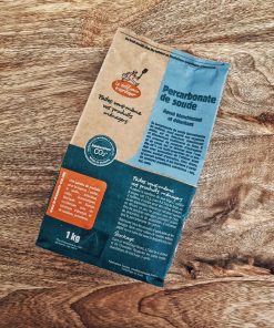 Le percarbonate de soude, ou plutôt percarbonate de sodium, est fabriqué à base de carbonate de sodium (cristaux de soude) additionné de peroxyde d’hydrogène (appelé eau oxygénée). Lorsqu’il est dilué dans de l’eau, il apporte ses propriétés dégraissantes, nettoyantes, antifongiques et blanchissantes. C’est donc un ingrédient multifonction.