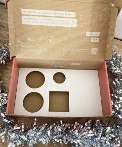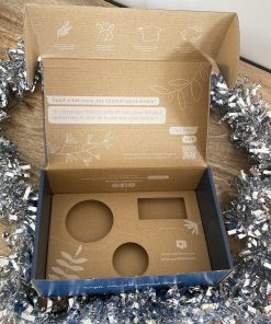 - Coffrets en carton composés de 90% de matériaux recyclés et entièrement recyclables