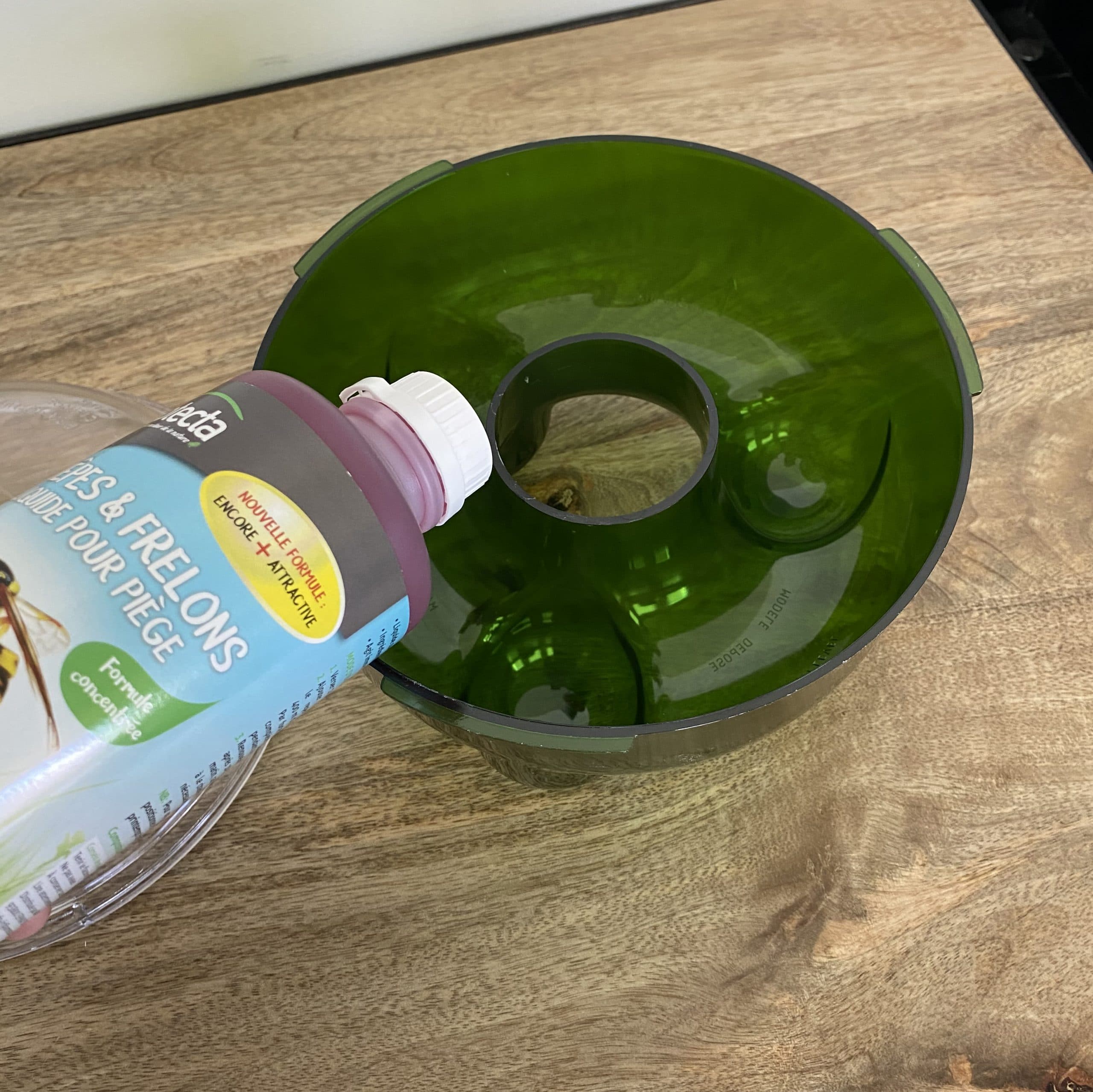 - Verser 123 ml d’attractif dans le piège et compléter avec de l’eau.