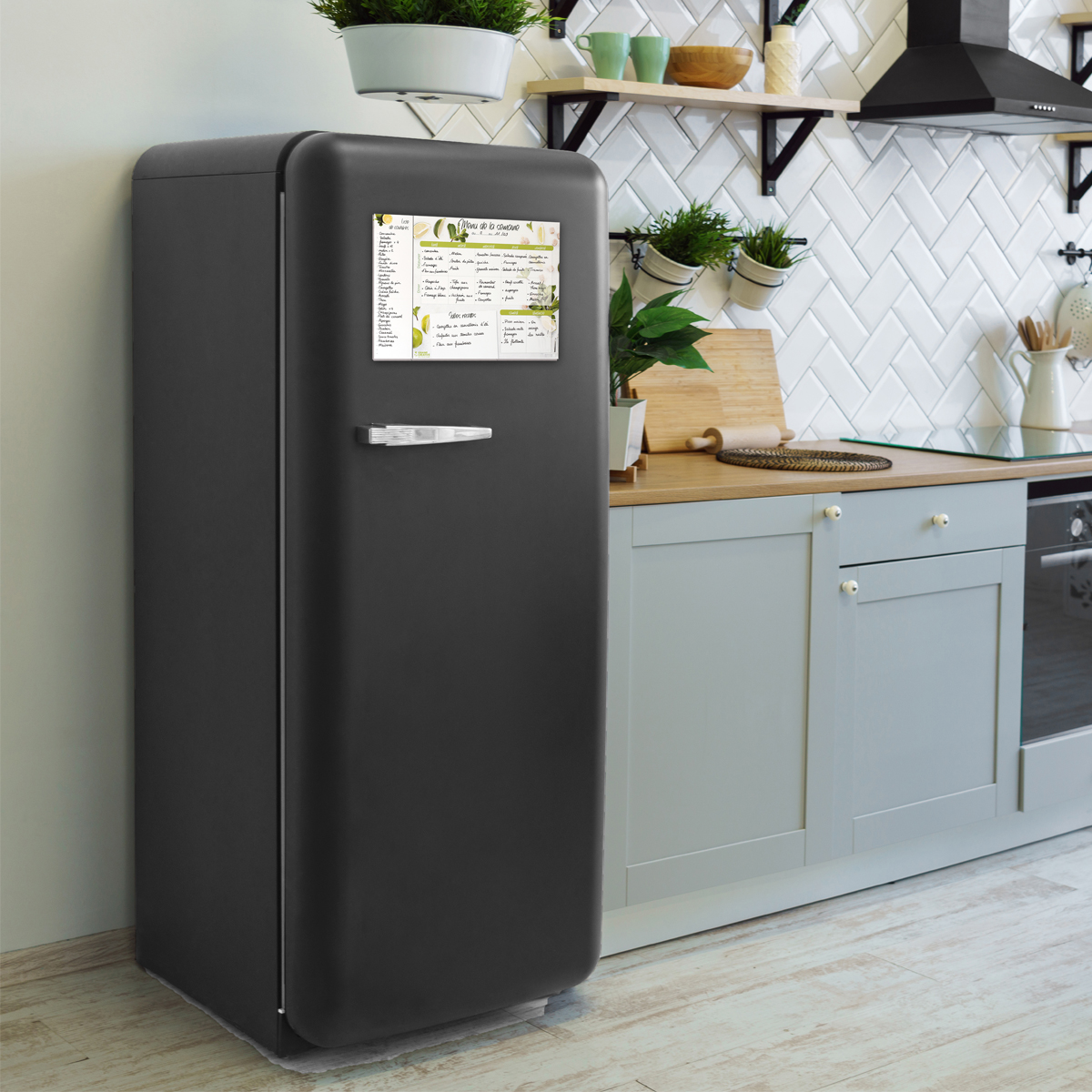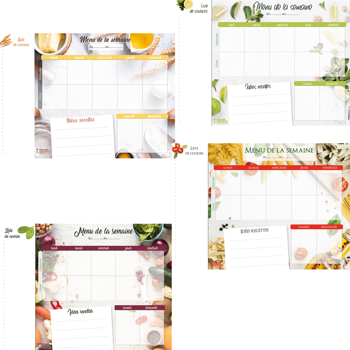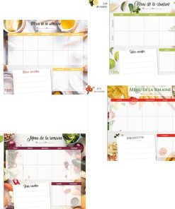 - Un bloc magnétique contenant 60 pages de menus hebdomadaires avec 4 designs différents pour varier les plaisirs