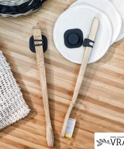 Voici l’alternative pour conserver une salle de bain facile et rapide à nettoyer : le porte-brosses à dents aimanté. Il est composé de deux parties : des œillets souples et une partie à fixer au mur. Les 2 parties tiennent ensemble grâce à un système d’aimants. Dans les œillets, déposez votre brosse à dents : ils s’adaptent à la taille du manche sans problème car ils sont en silicone. Collez l’autre partie sur une partie bien plate de votre salle de bain.