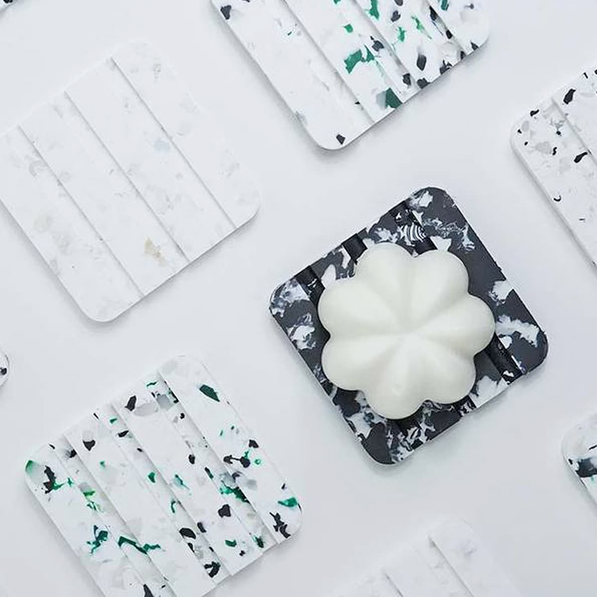 Grâce à une technologie innovante, aucun ajout de matière vierge n’est nécessaire à la créationde ces porte-savons.