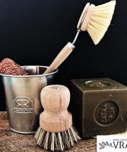 Il est en métal brut, ce qui lui donne un aspect rustique qui s’harmonisera très bien avec le bois des brosses et goupillons.