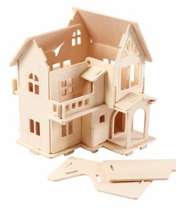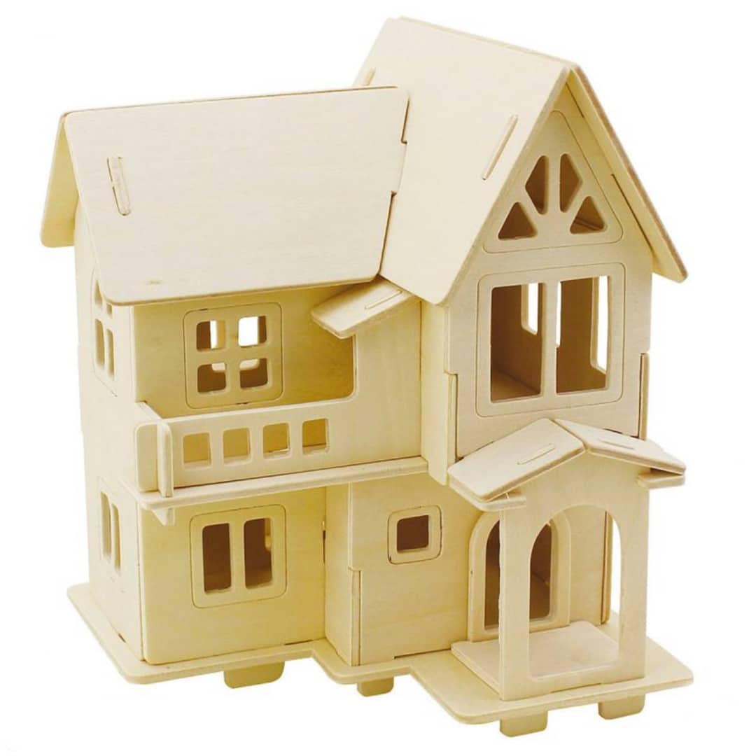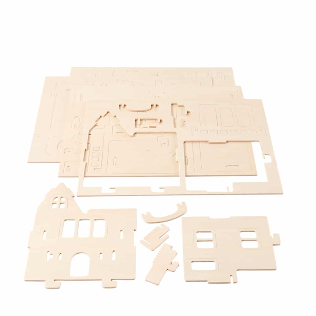 Maison 3D en bois à assembler, décorer et peindre pour créer soi même sa propre maisonnette de jeux.