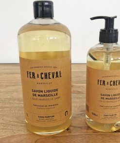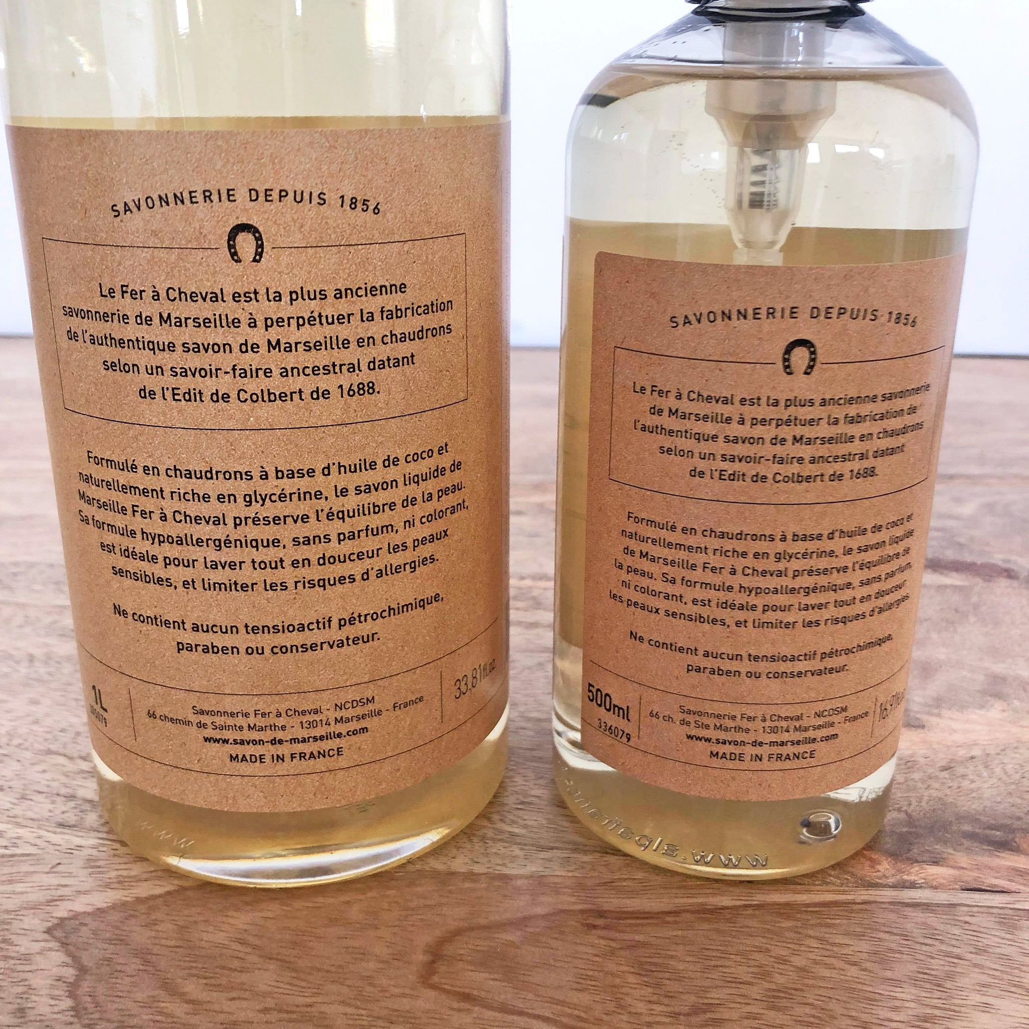Savon liquide de Marseille surgras et sans parfum, il se rapproche de la composition de l’authentique savon de Marseille.
