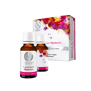 Regulatpro Hyaluron contient l’unique combinaison de Regulatessenz® et d’acide hyaluronique végétalien, avec des nutriments spécifiques pour la peau : vitamine C, biotine, Zinc, Cuivre, Silice naturelle.