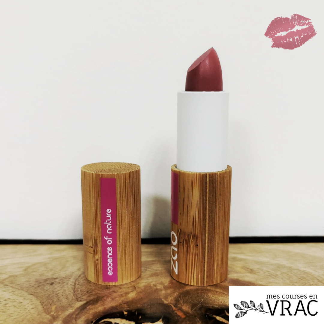 Le rouge à lèvres peut être appliqué directement sur les lèvres ou à l’aide du Pinceau lèvres 708. Pour une meilleure tenue utiliser un Crayon Zao sur le contour des lèvres avant l’application.