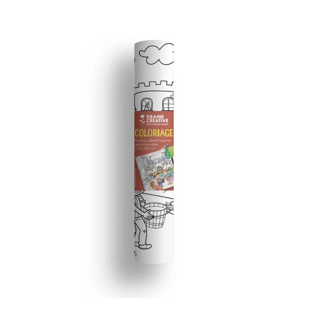 - Surface à Colorier : Un rouleau imprimé avec des motifs variés à colorier, parfait pour les crayons de couleur, les feutres et les crayons de cire.
