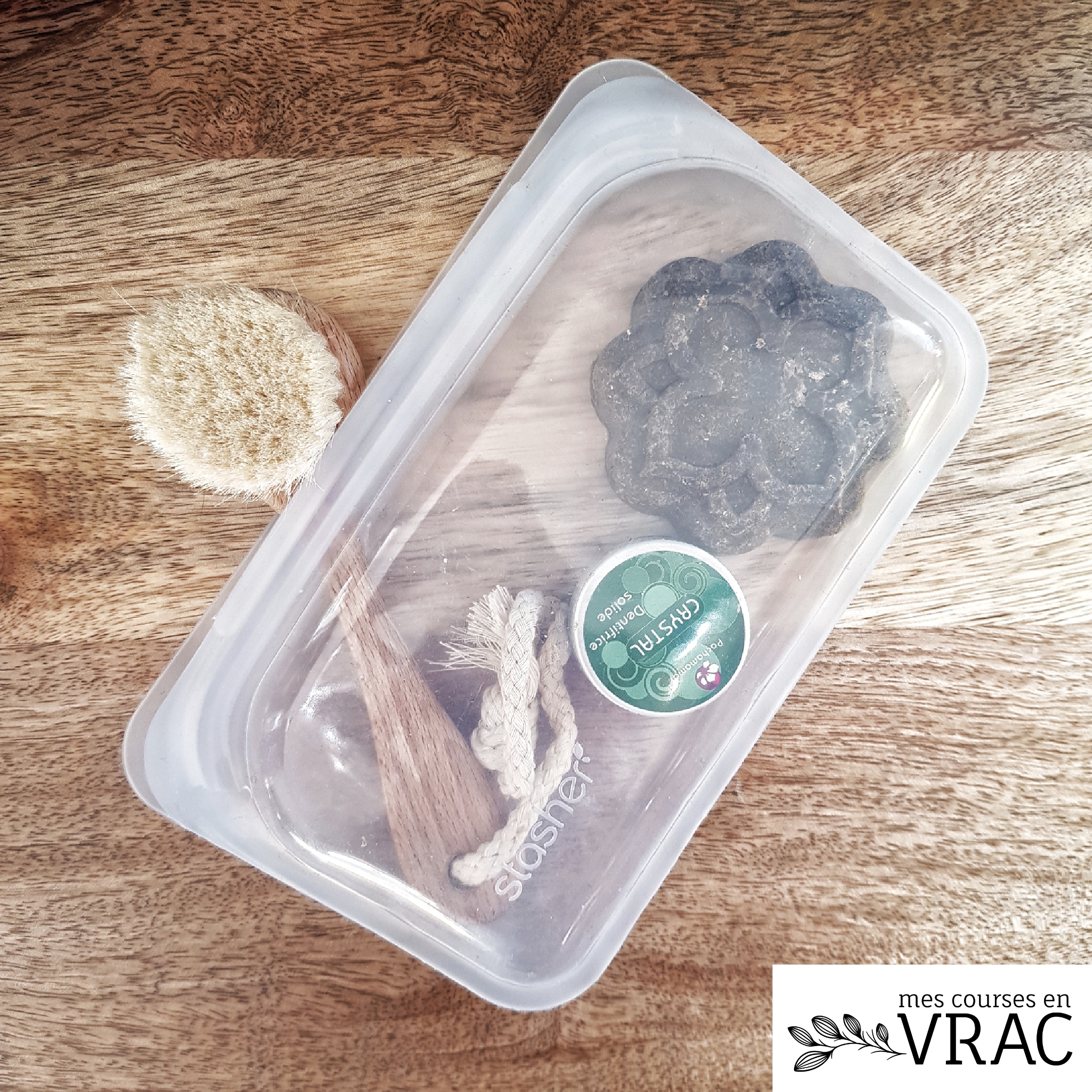 Petite astuce : il permet aussi de stocker les cosmétiques solides, les savons et sert donc de trousses de toilette.
